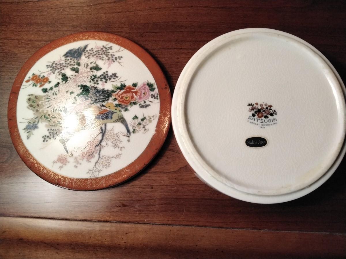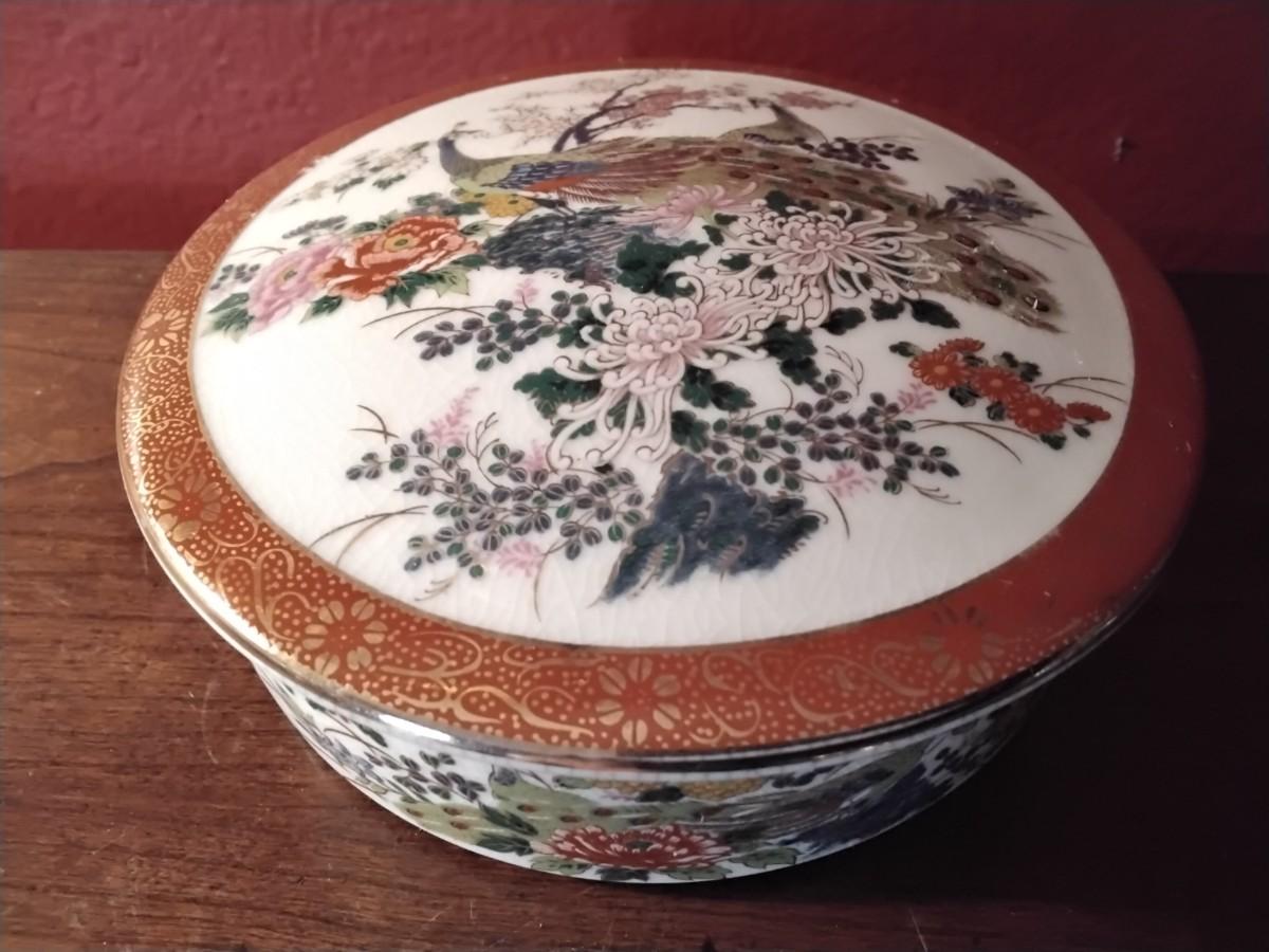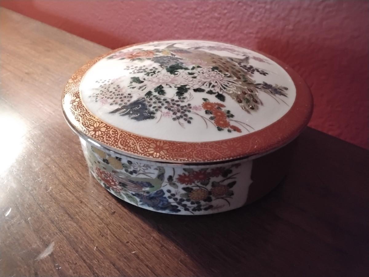 Gorgeous handpainted porcelain Satsuma bowl with Lid. No chips or breaks. 5 1/4" x 2"