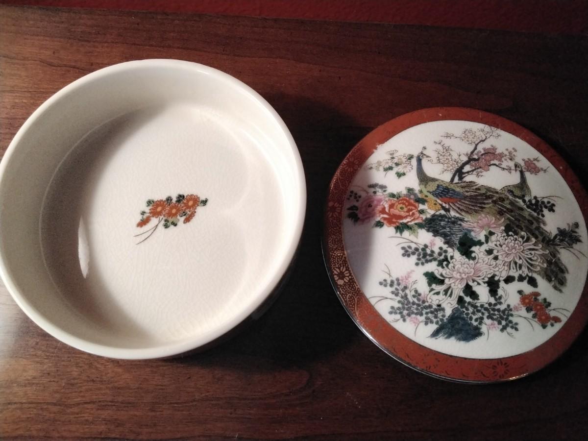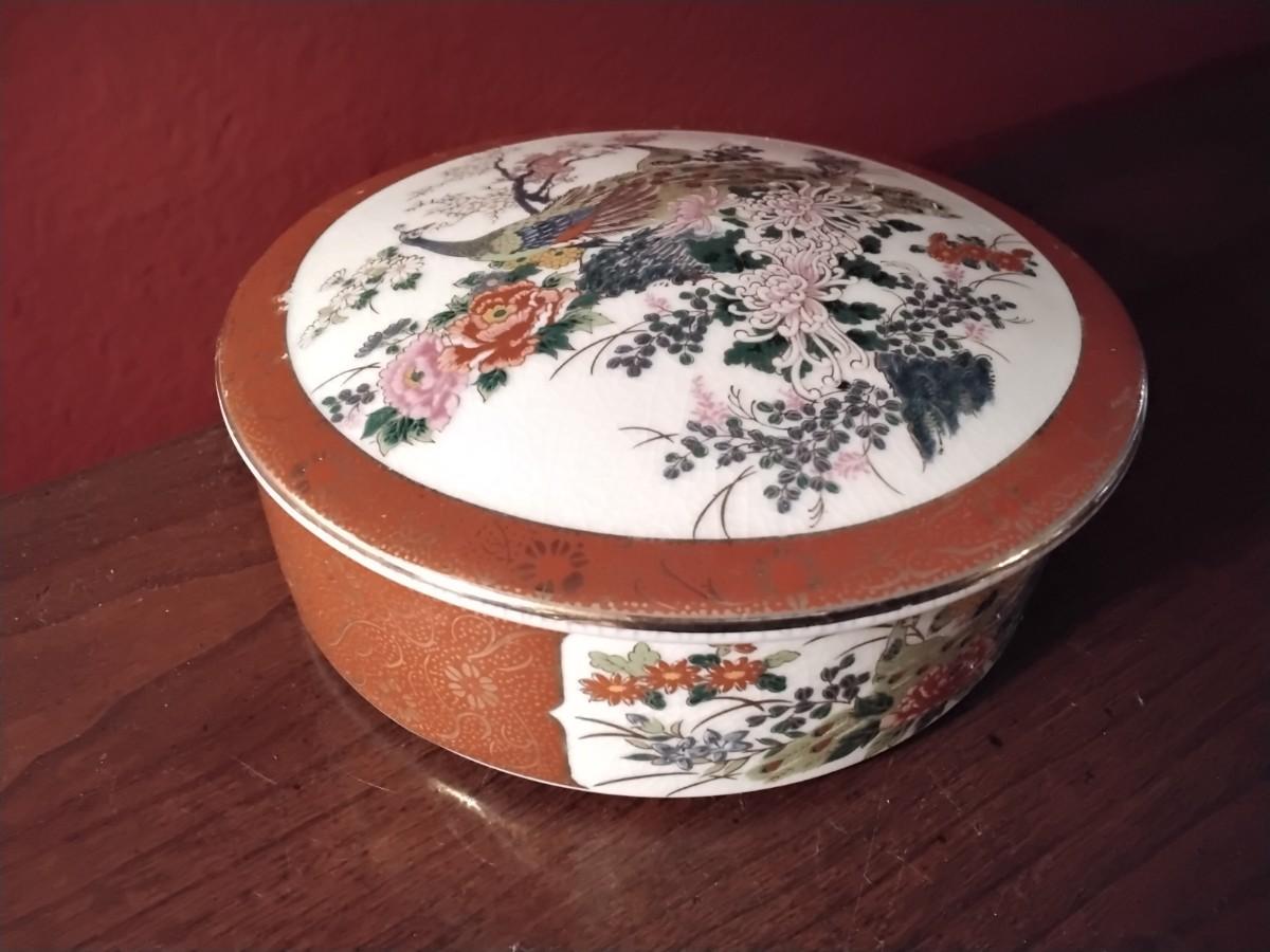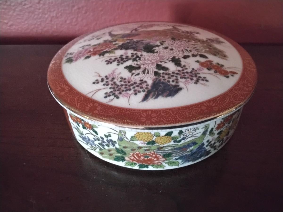 Gorgeous handpainted porcelain Satsuma bowl with Lid. No chips or breaks. 5 1/4" x 2"