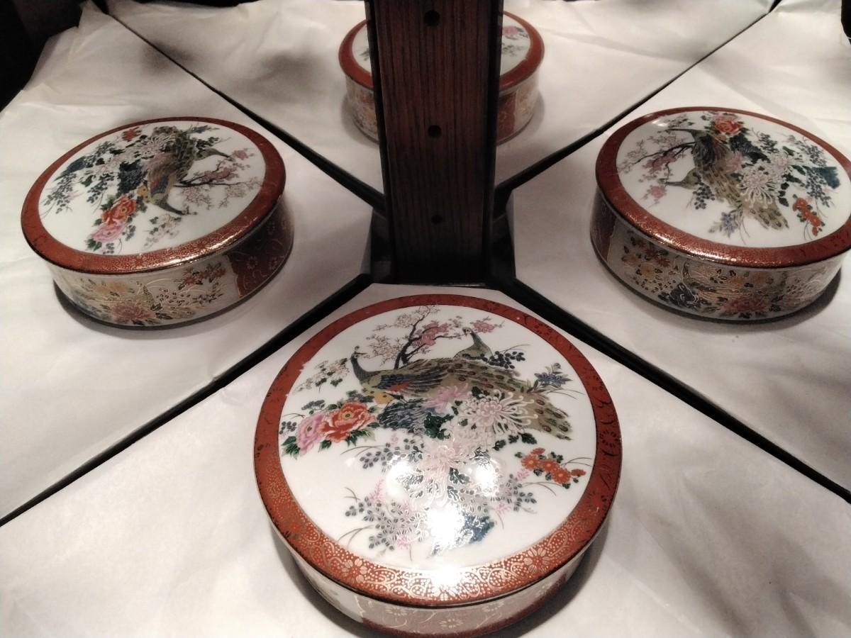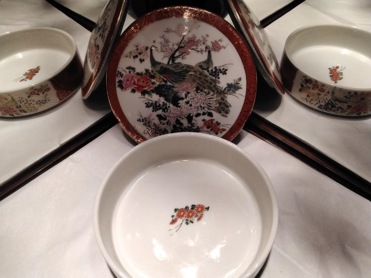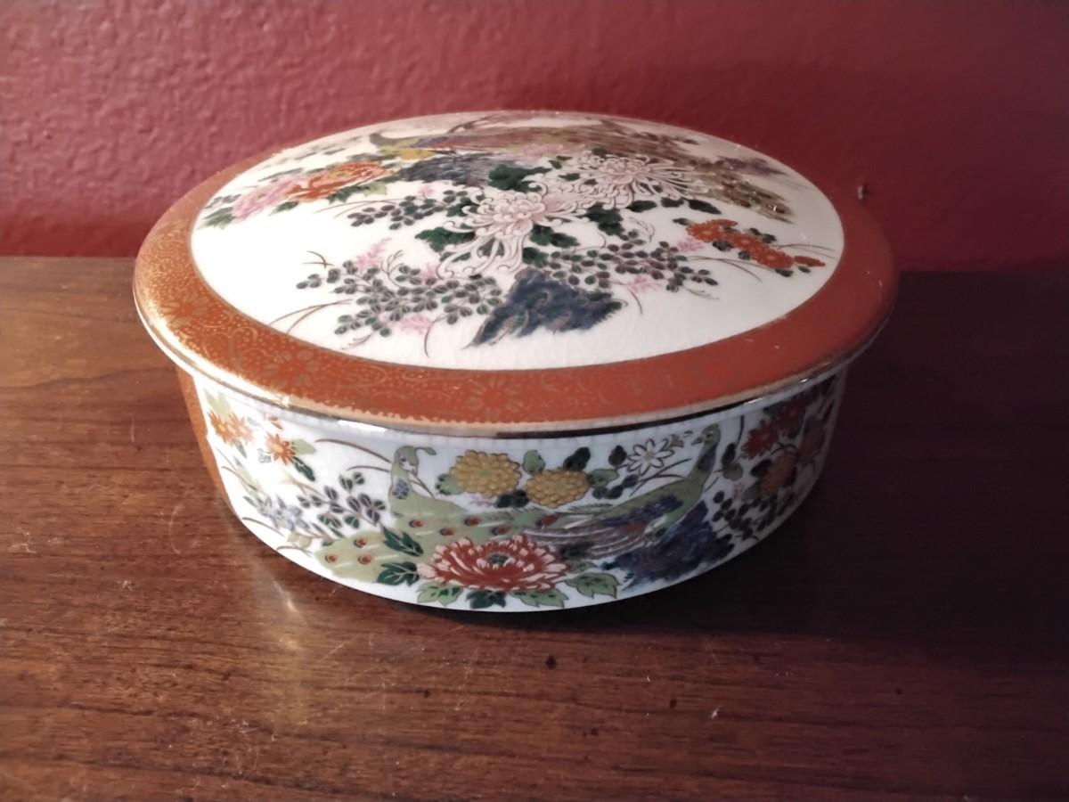 Gorgeous handpainted porcelain Satsuma bowl with Lid. No chips or breaks. 5 1/4" x 2"