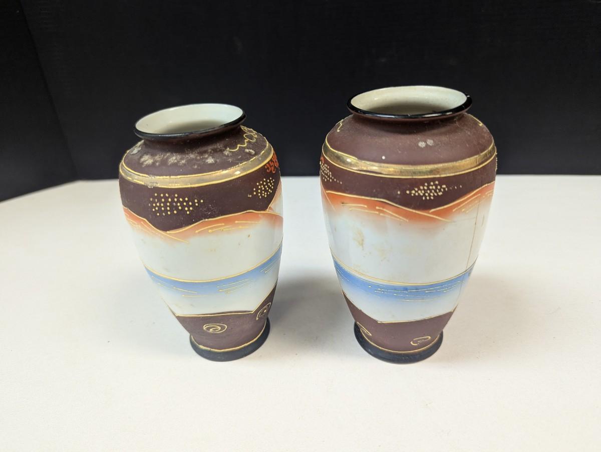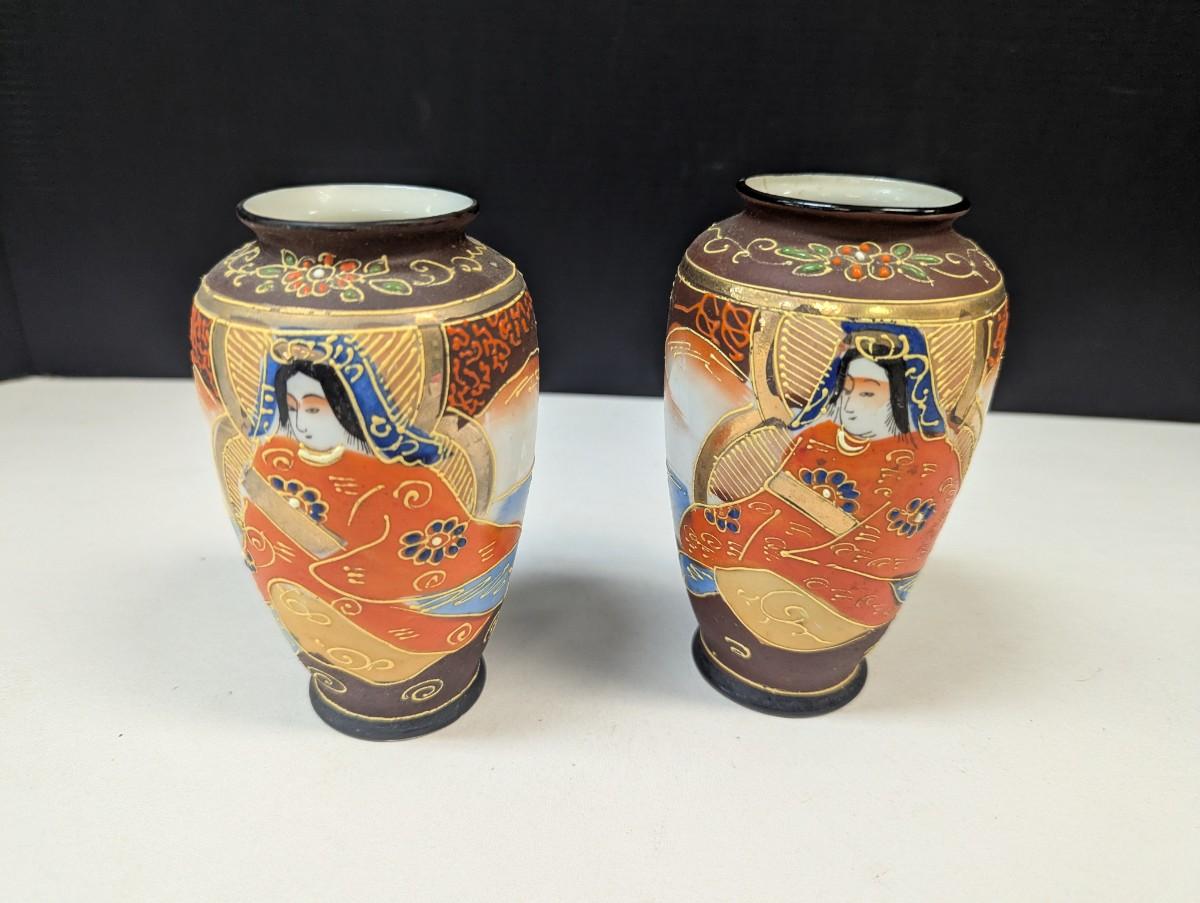 Satsuma Moriage Vase Hand Painted Japanese Immortal Gold Gilding