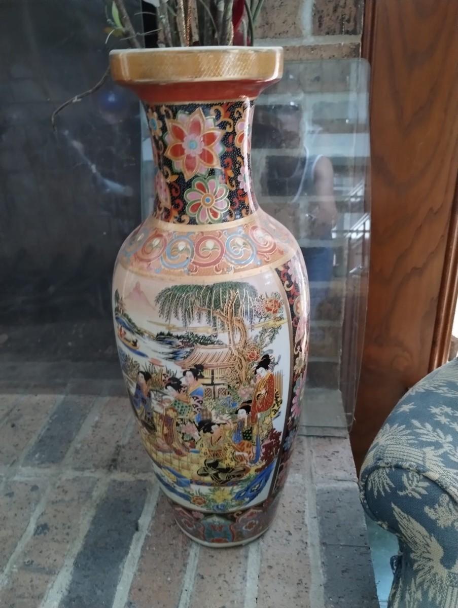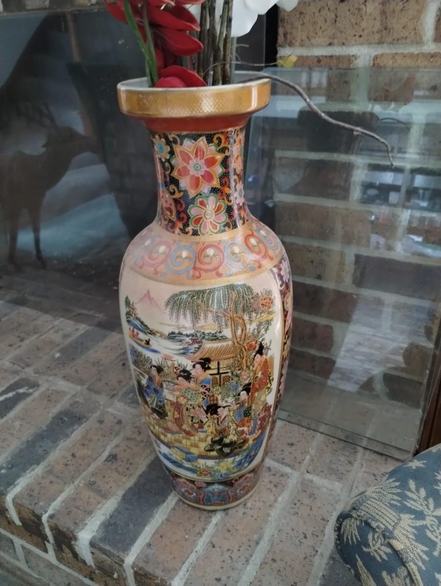 Satsuma Style Japanese Floral Geisha Porcelain Vase