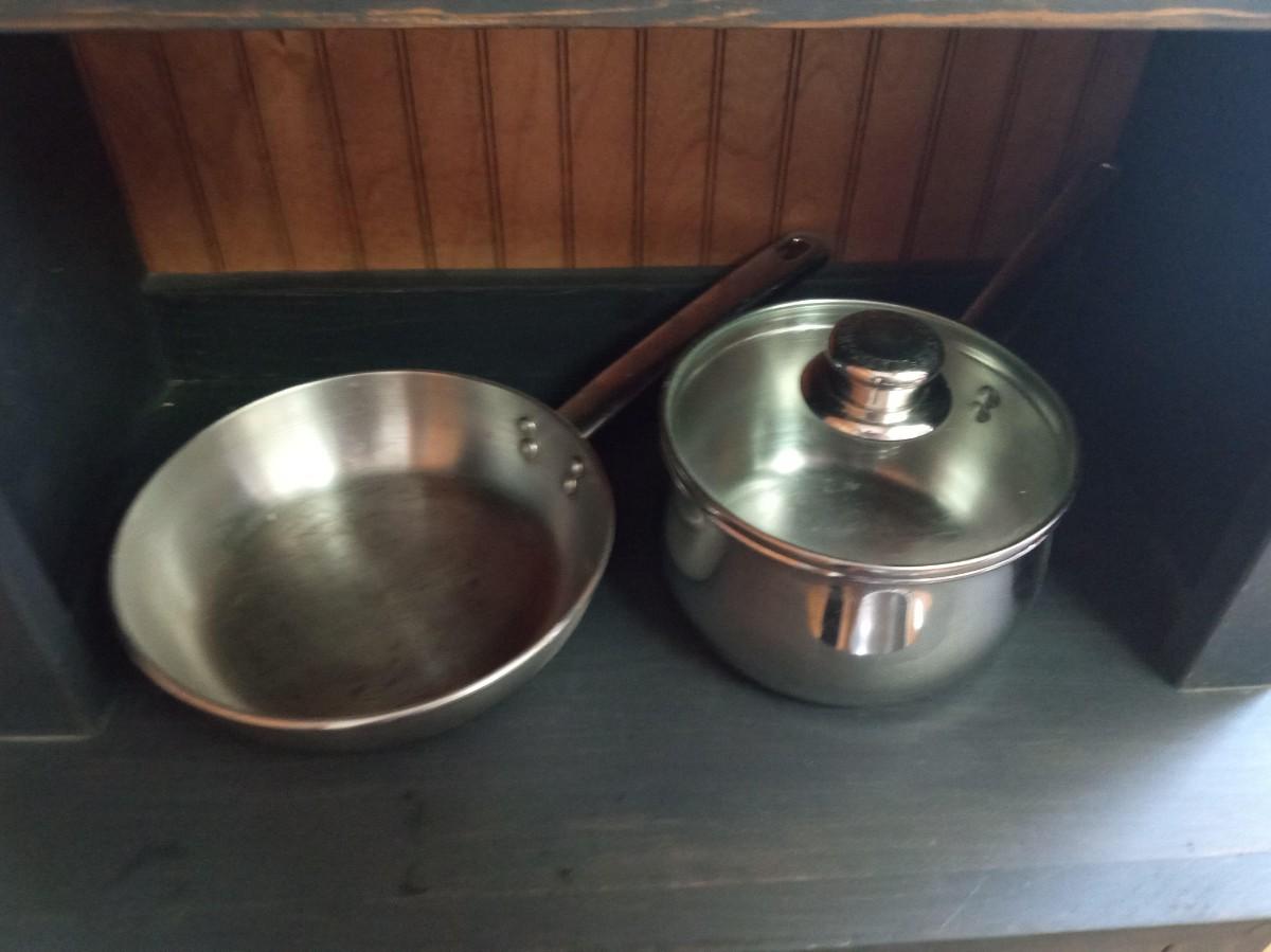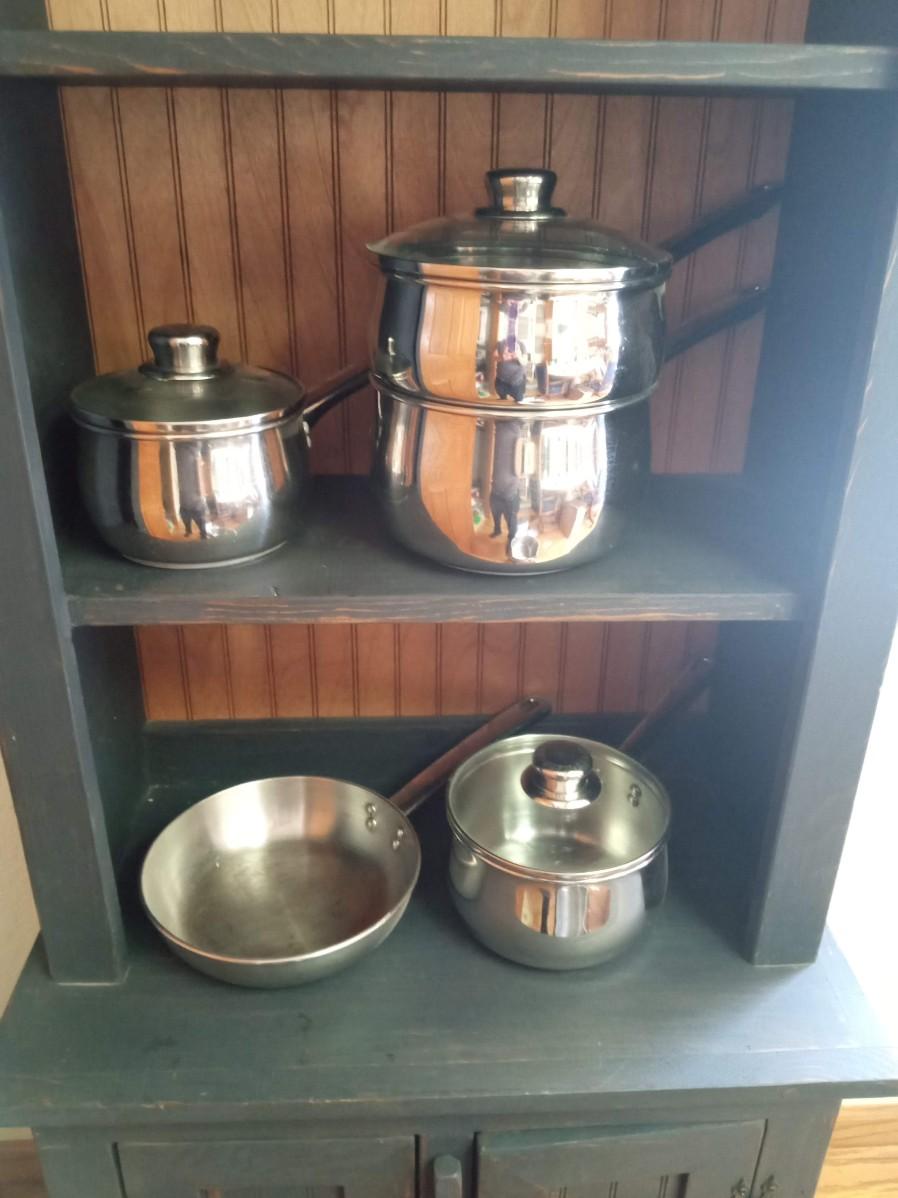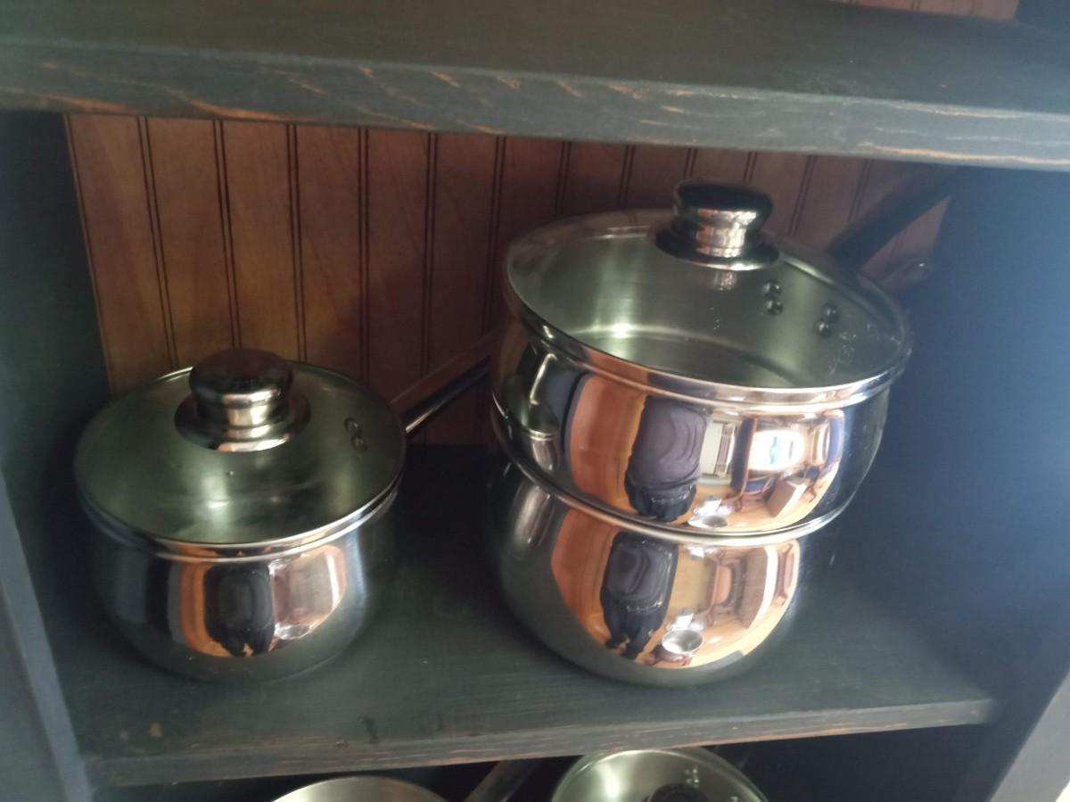 SAUCE PANS, DOUBLE BOILER AND SMALL SKILLET