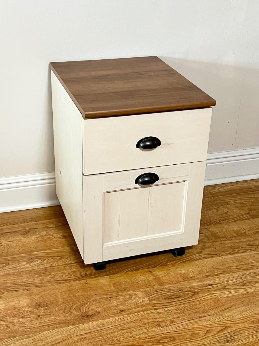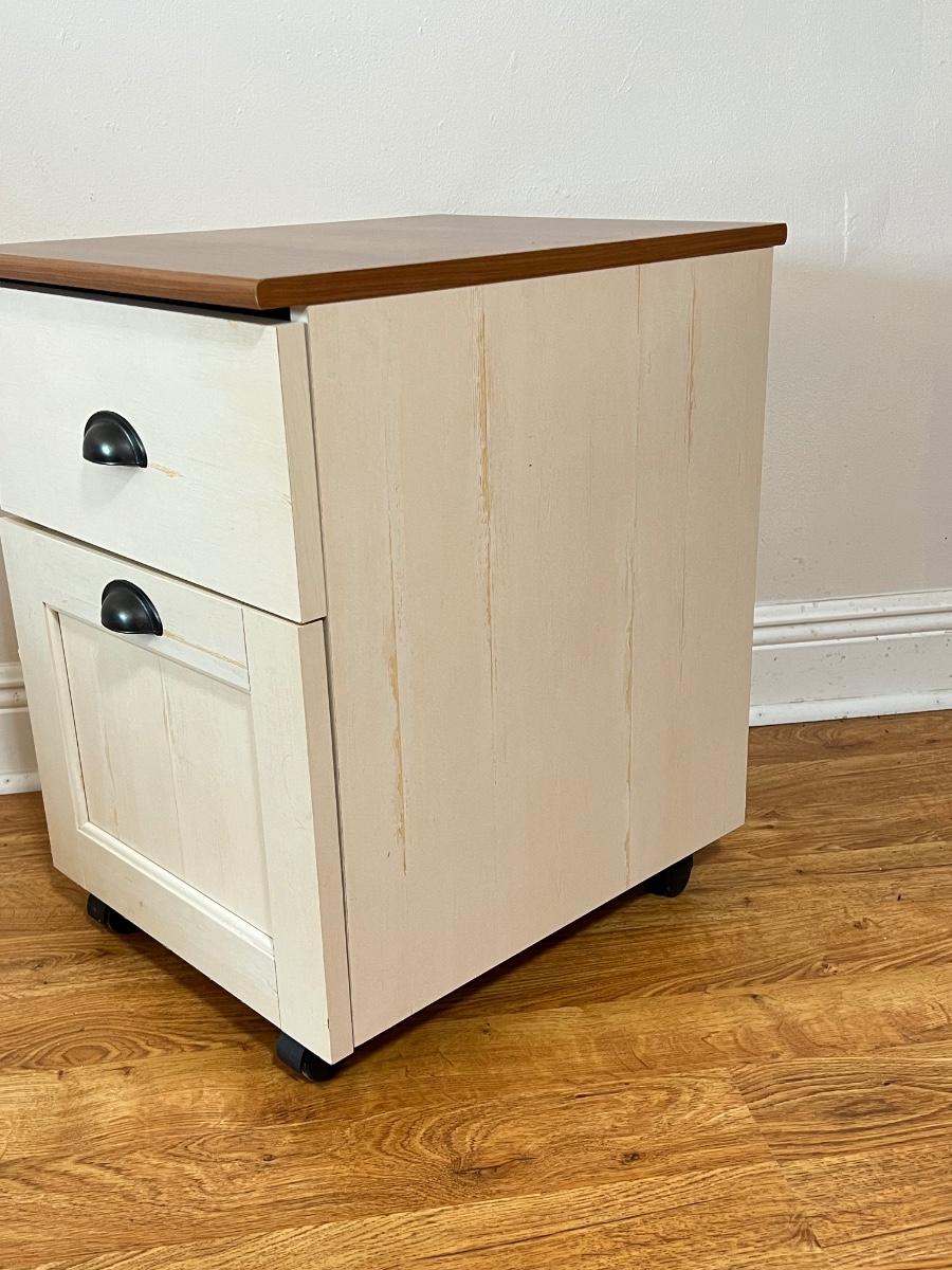 SAUDER ~ Distressed Rolling Wooden Filing Cabinet