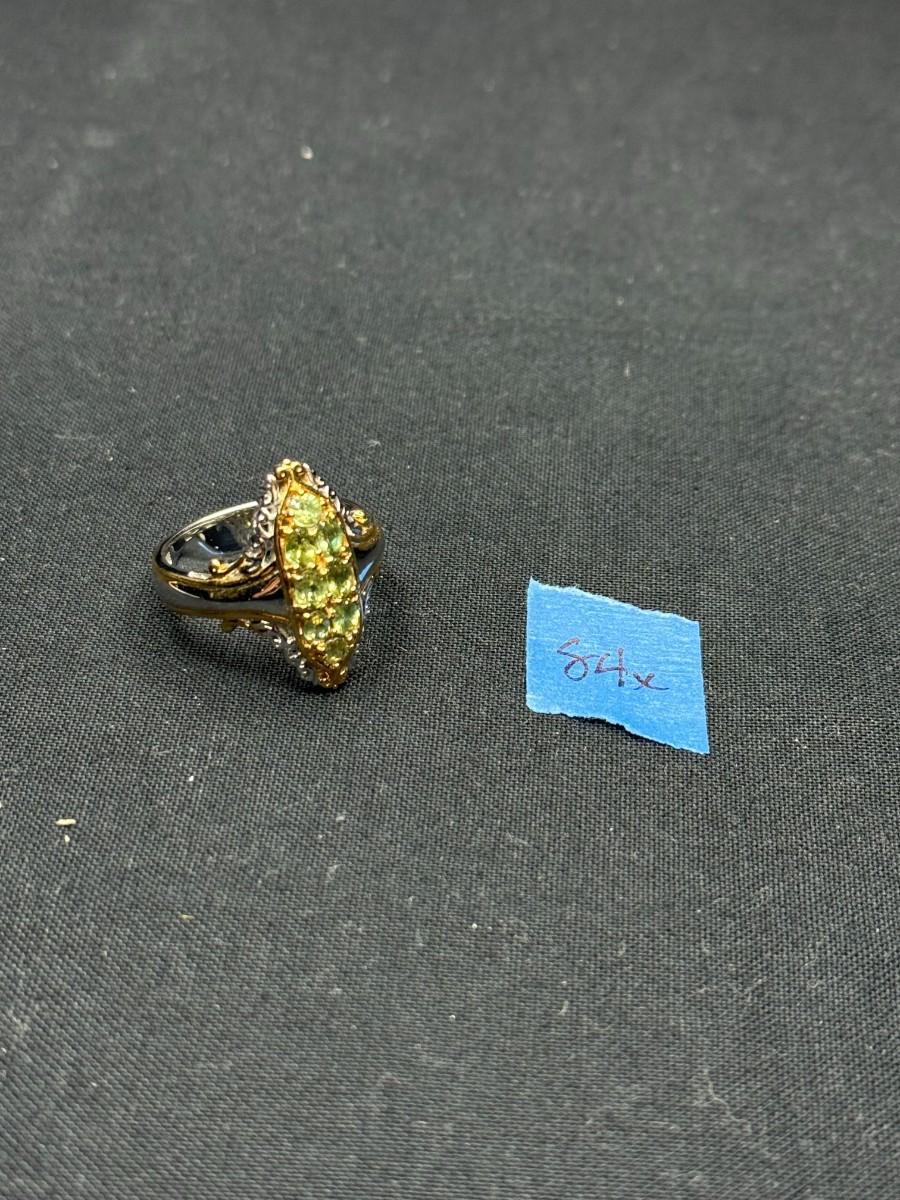Sava Sphene Elongated Ring in Vermeil Yellow Gold and Platinum Over Sterling Silver