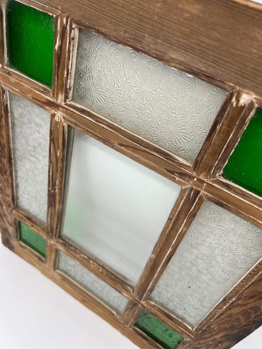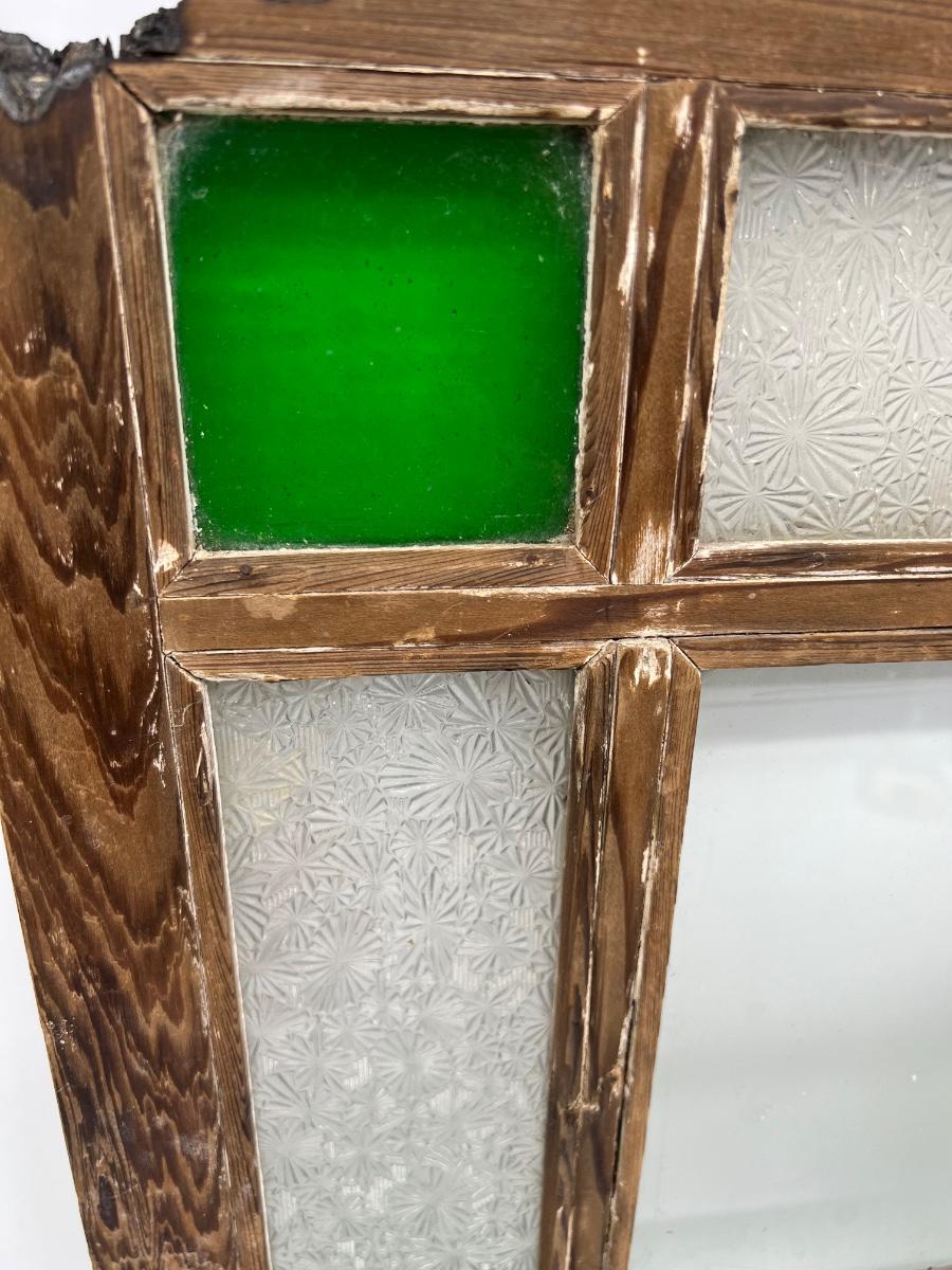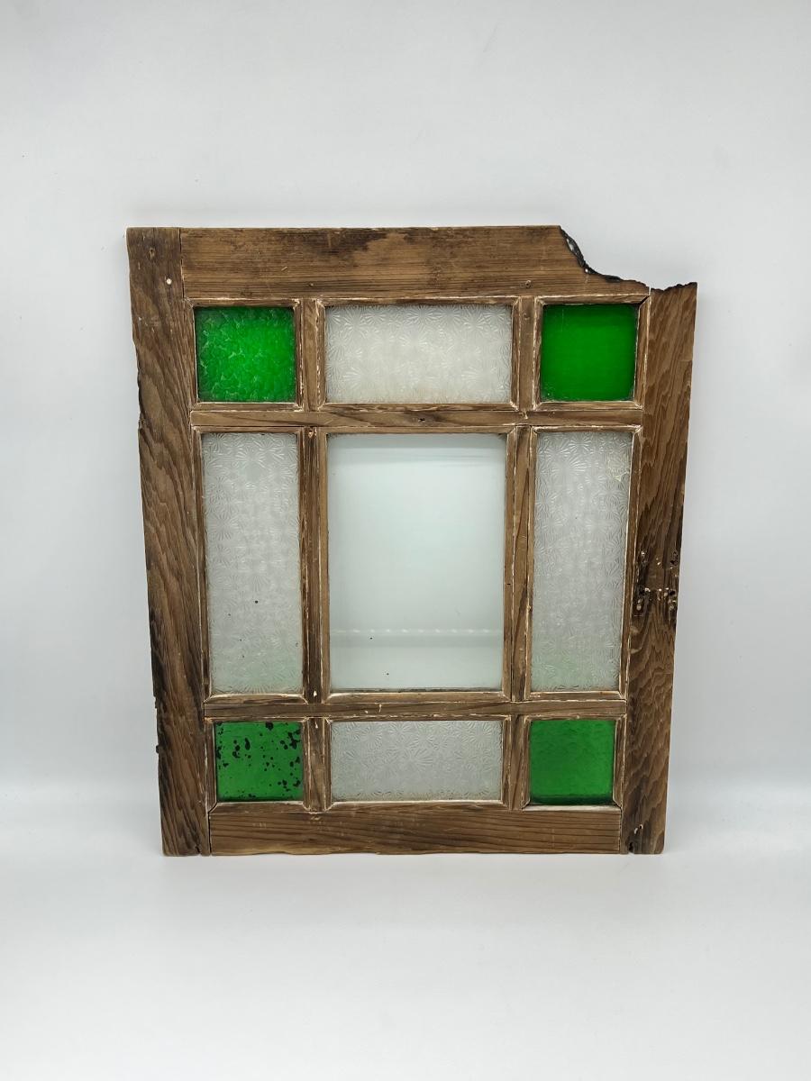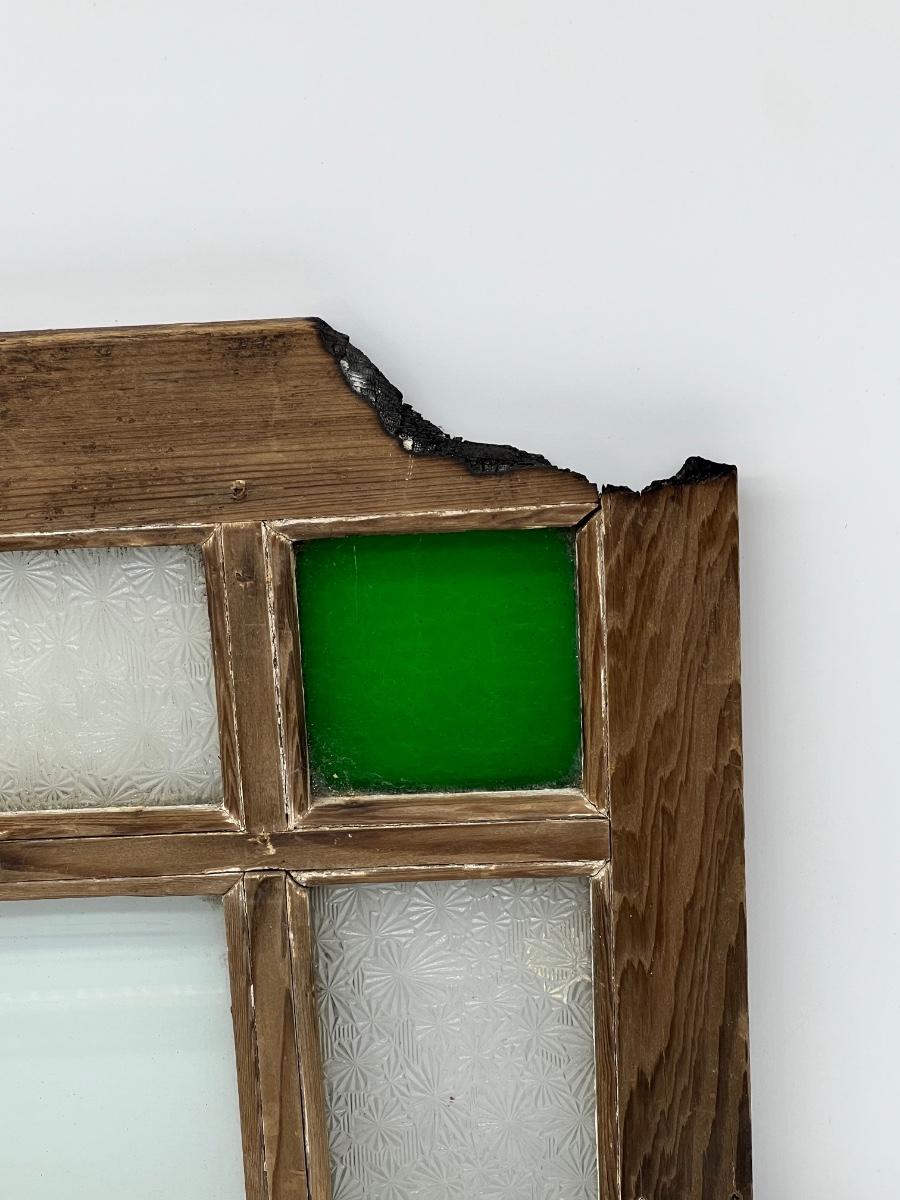 Saved From The Fire ~ Small Vintage Wooden Framed Stained Glass Window