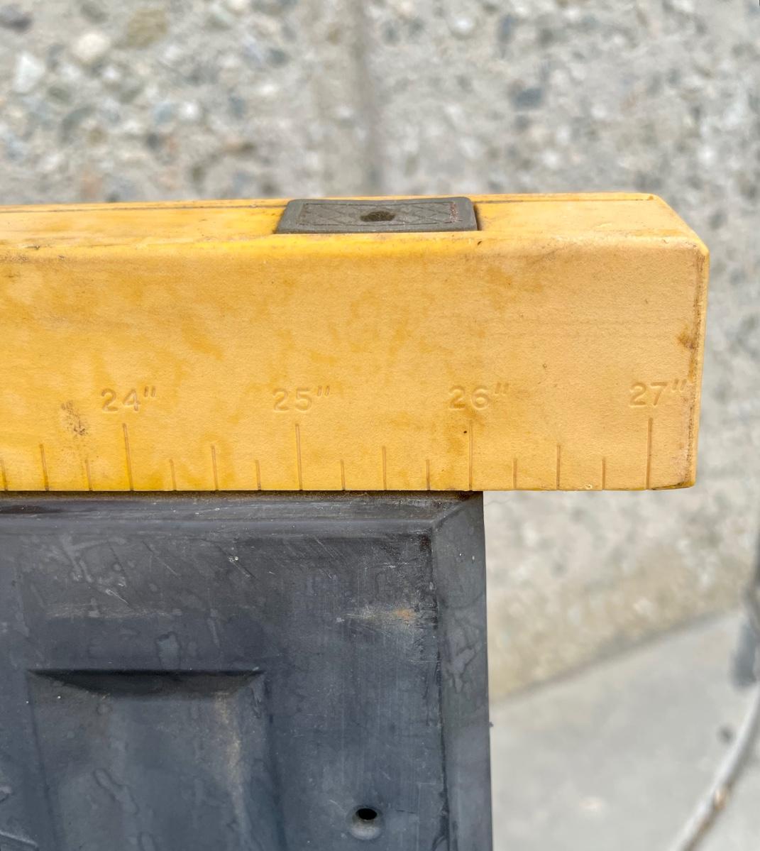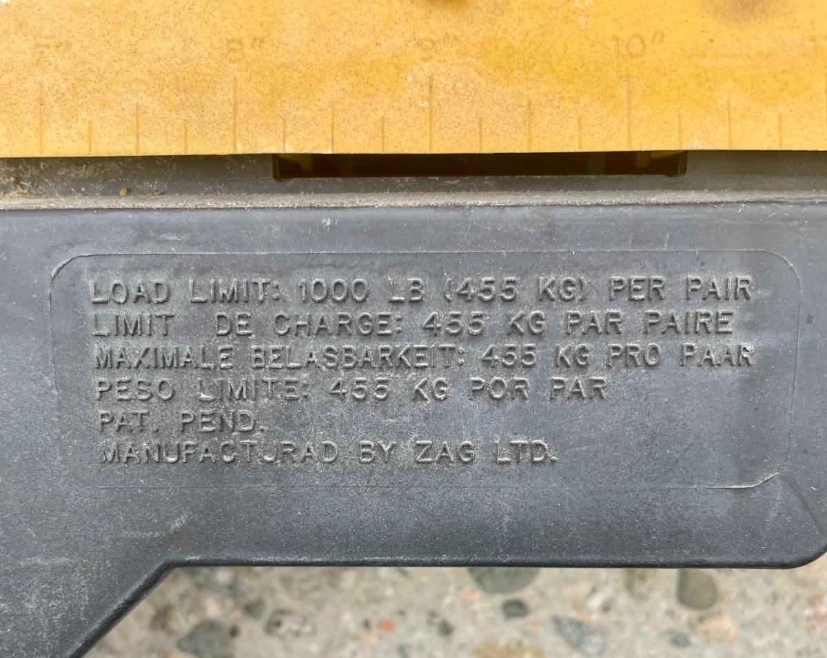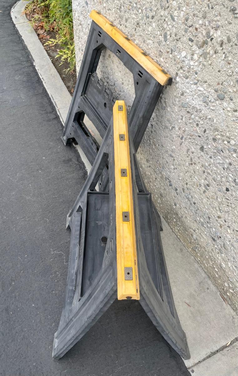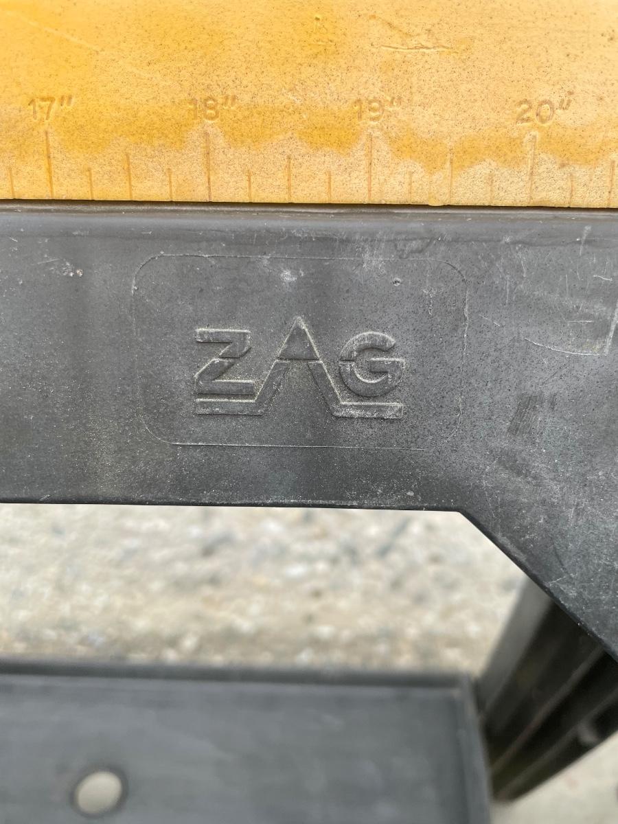 Pair of weatherproof sawhorses by ZAG. Measures approx. 27" across the top fail. Rated to support 1000 pounds per pair. Folds flat for easy storage. Great addition to any home workshop.