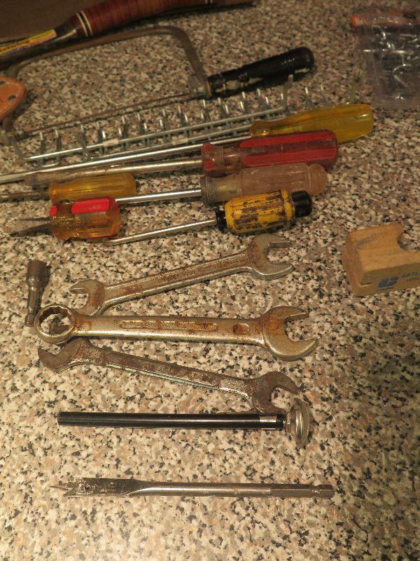 Wrenches, saw blades, copper pipes, screw drivers, saws and more. Bring box to move from basementPlease read Terms and Conditions before placing a bid. Pick up is Friday, October 25th between 4 and 7, and Saturday, October 26th between 9 and 1. Props included in photos are not included in listing. All measurements are approximate. Comes from home with cats.