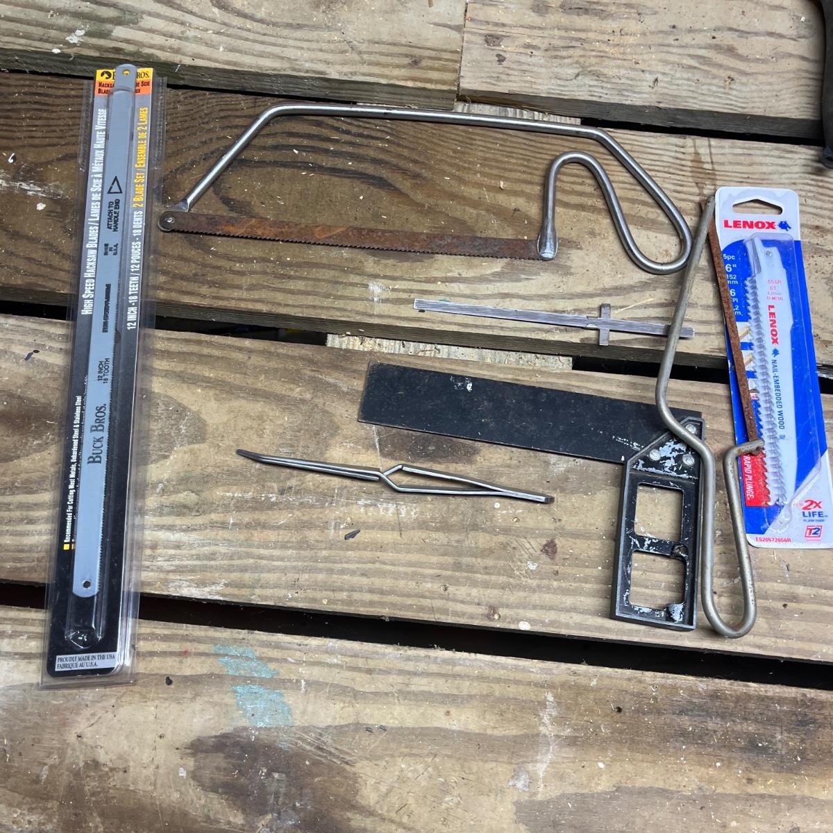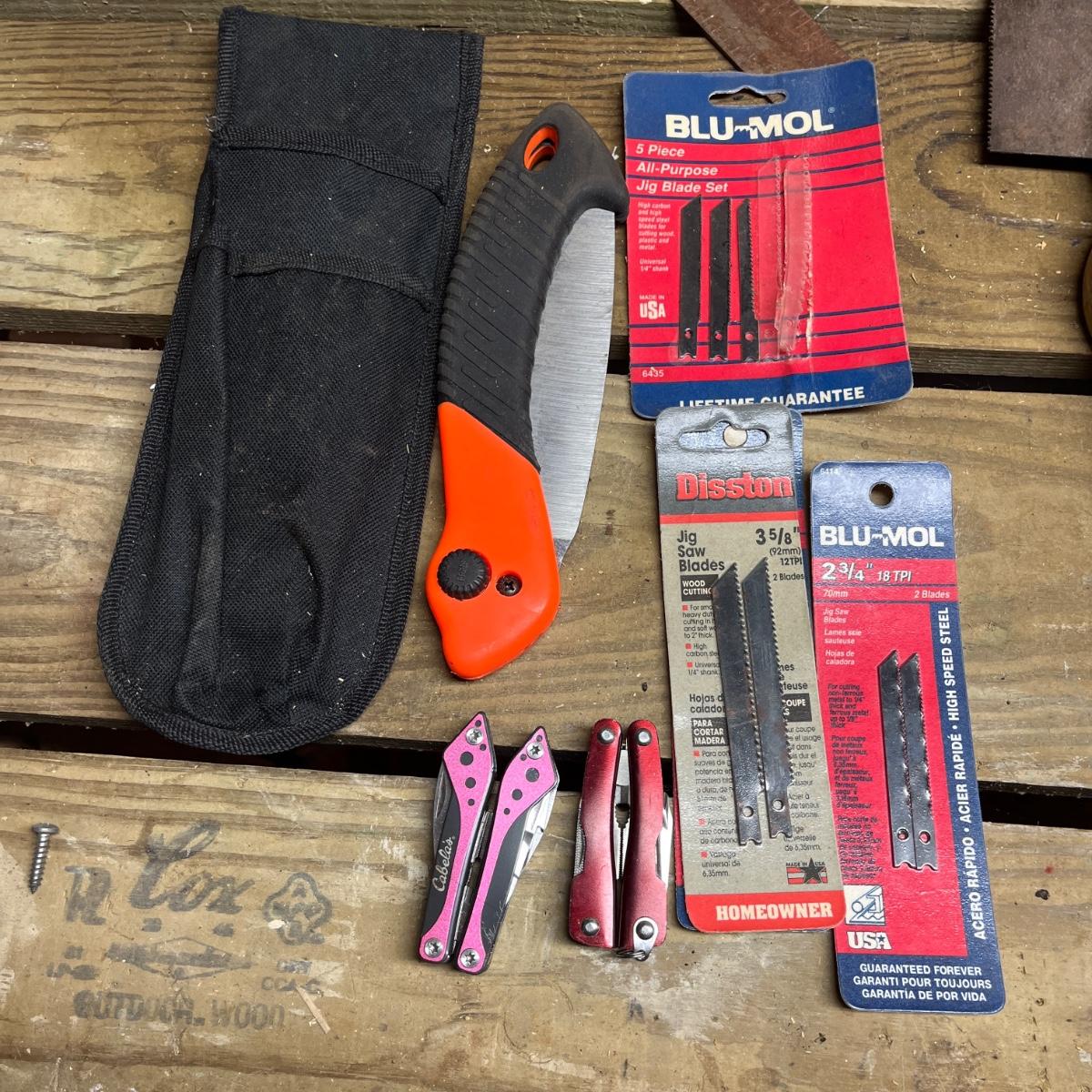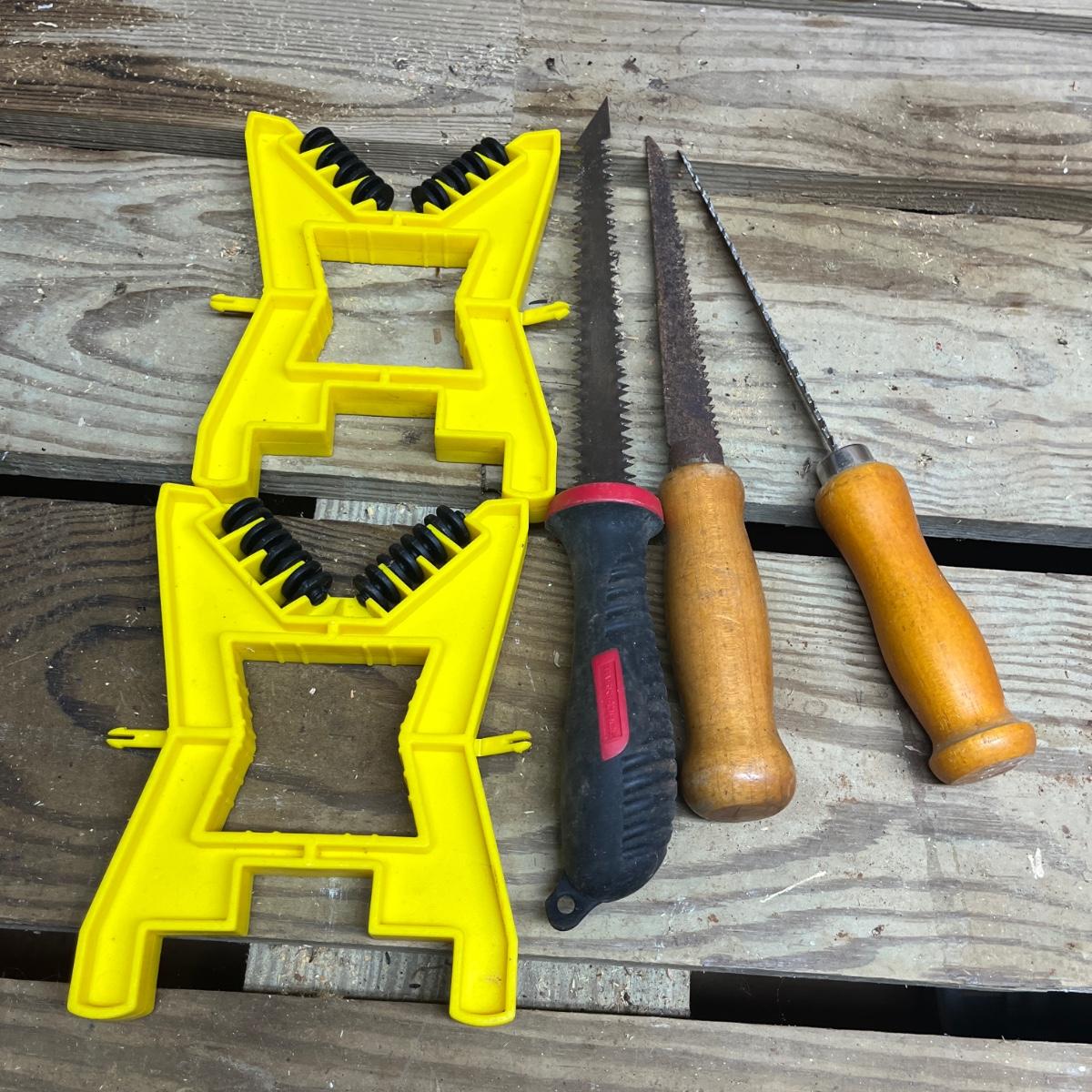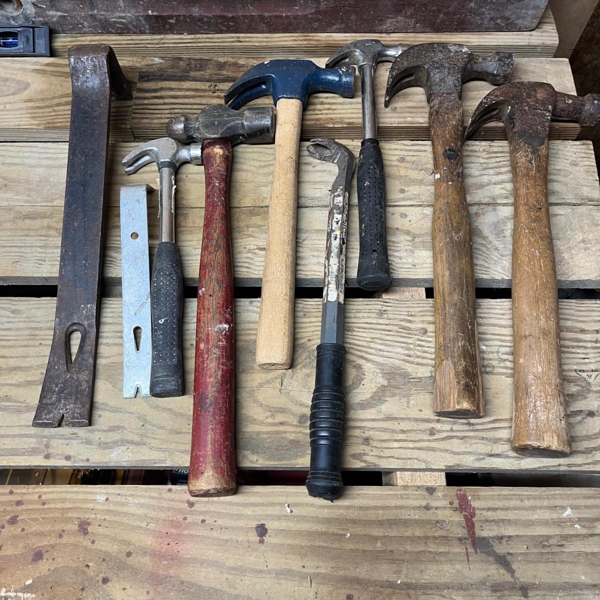 This large lot includes hacksaws, toolbox saw, coping saws, ball peen hammer, claw hammers, levels, Stanley wood plane, stud finders and more. Largest level measures 36” long.
