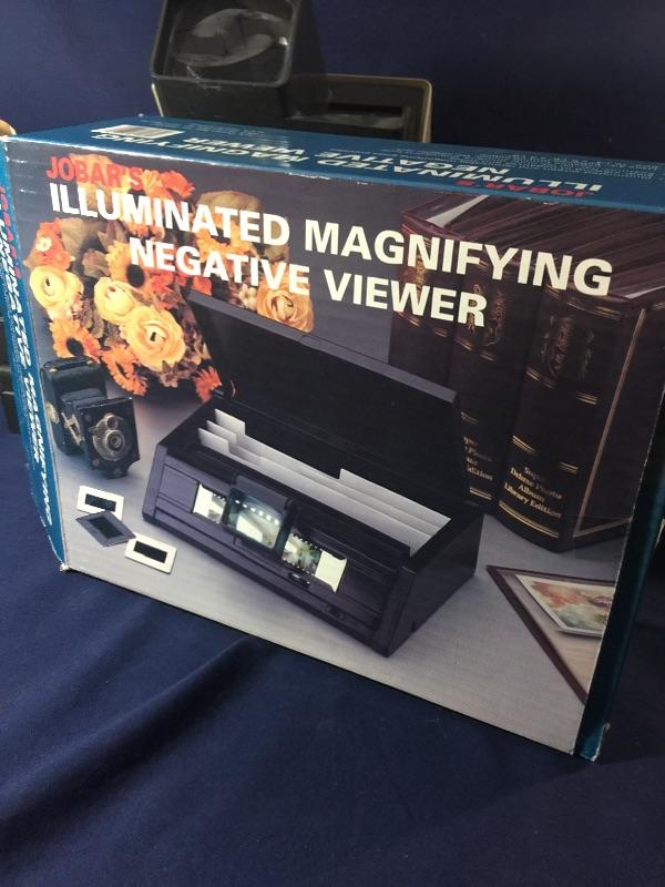 Magnifier still in box. Cases hold 150 slides each.