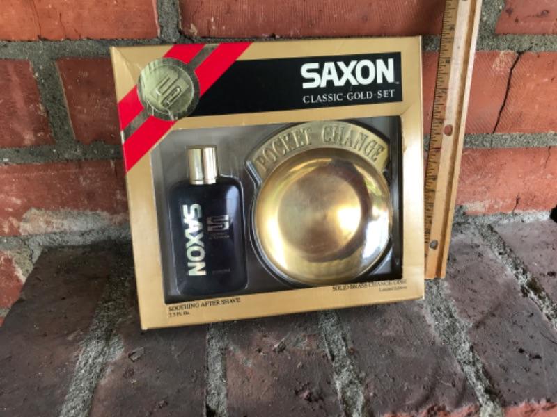 SAXON CLASSIC GOLD SET, AFTERSHAVE AND POCKET CHANGE DISH