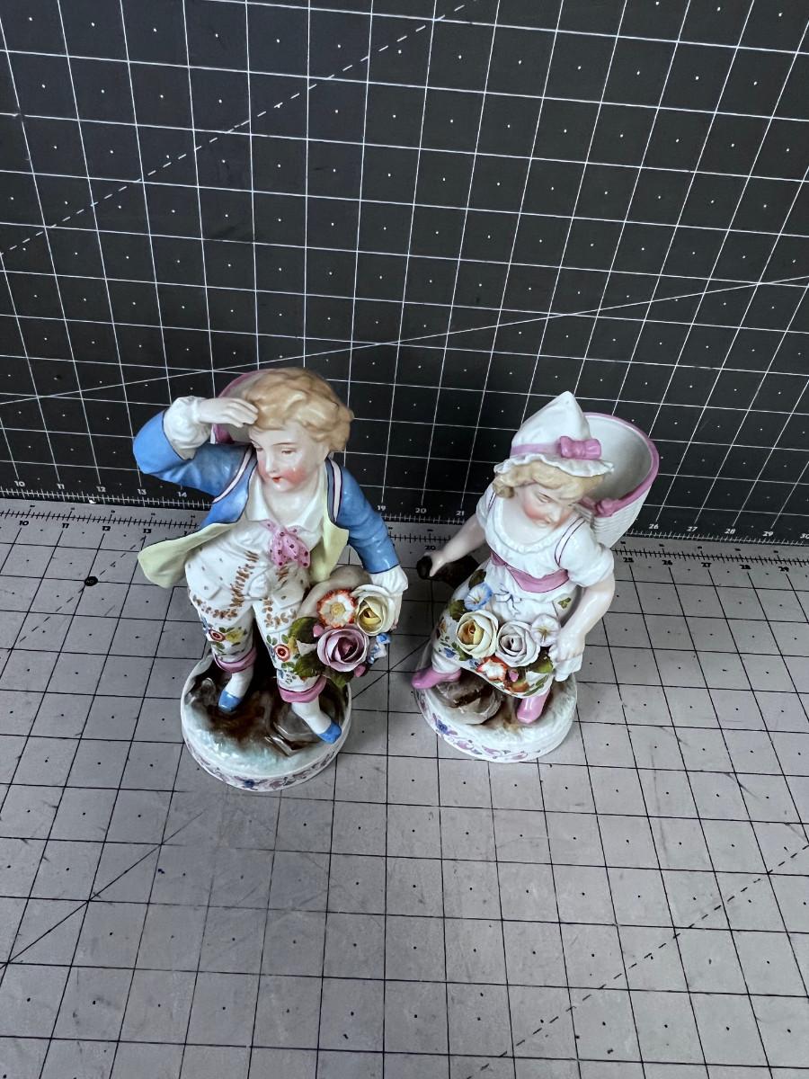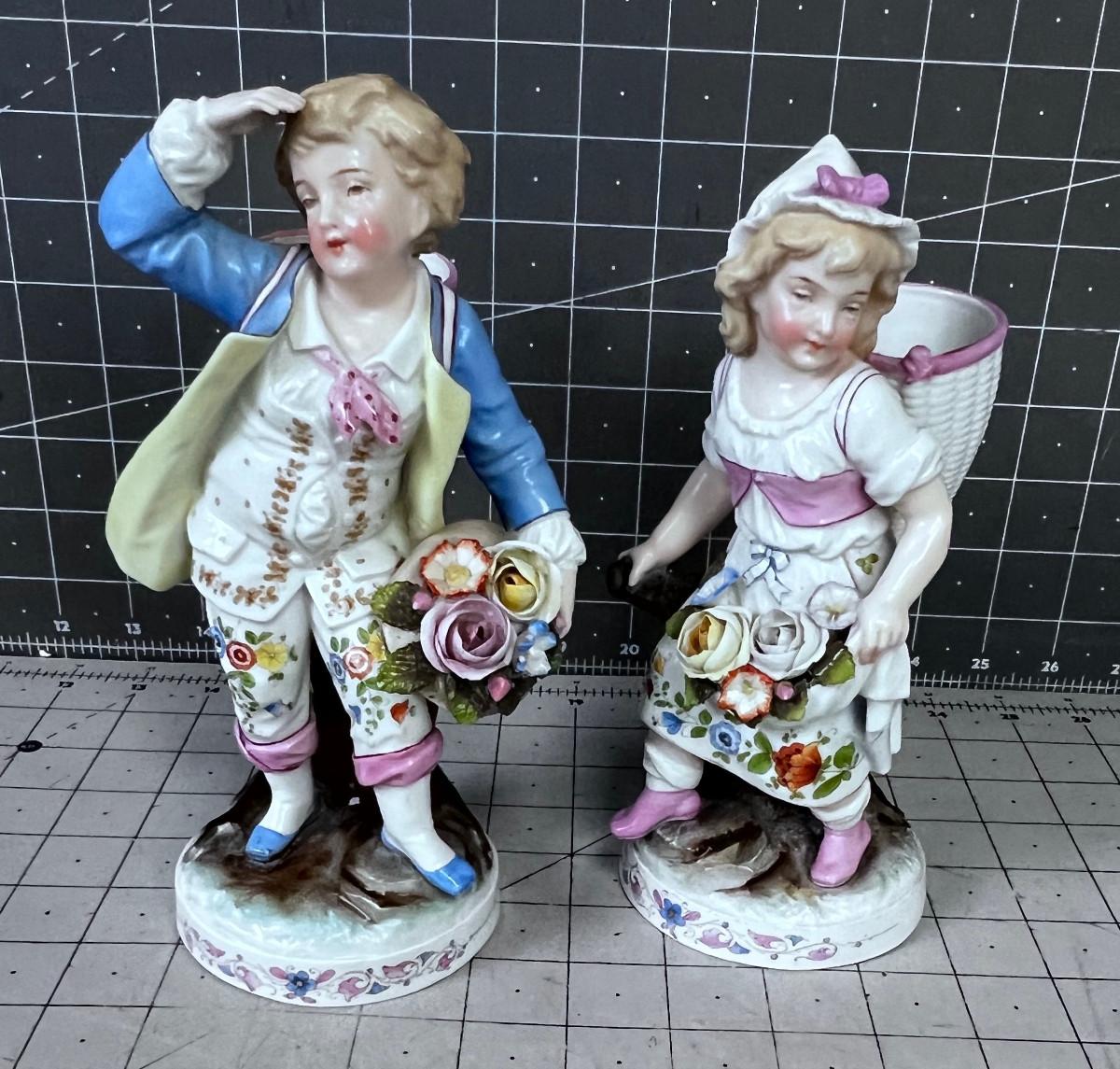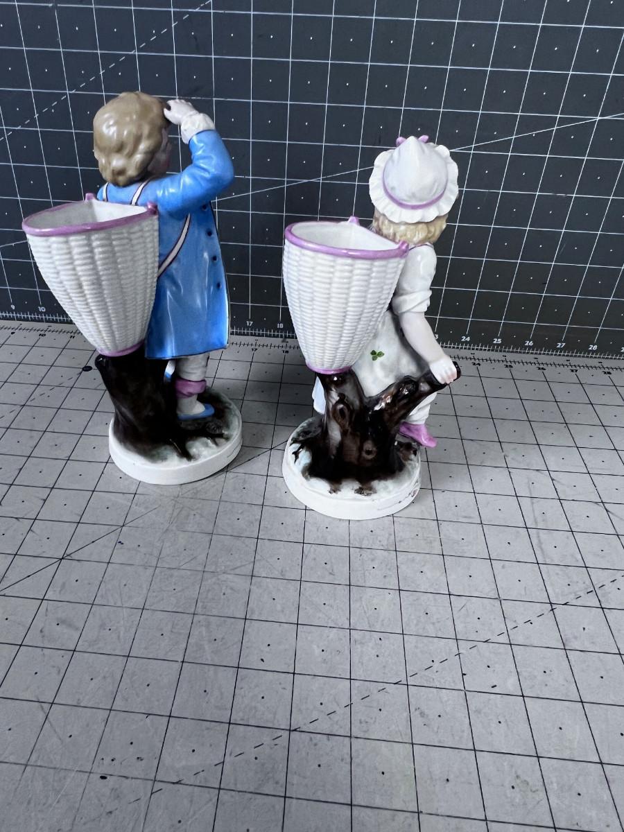 Saxony Bisque Porcelain Boy & Girl w/Baskets c. 1910