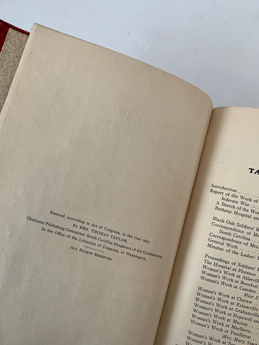 SC Women in the Confederacy Book Lot, 2 books (1903, 1907), one book may have termite damage as pictured