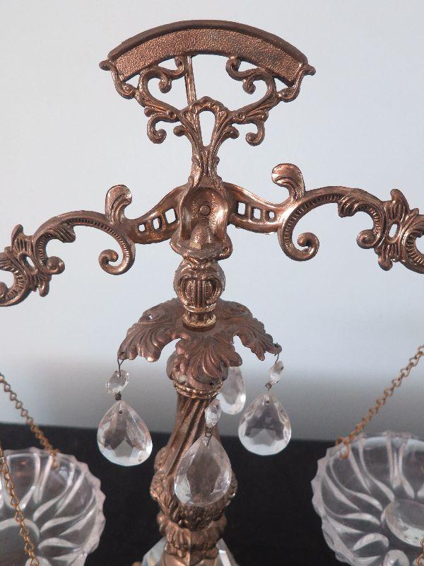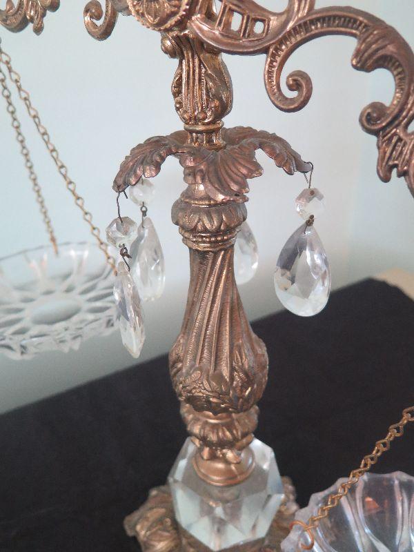 Beautiful piece with crystals, one crystal has broken off. Seventeen inches tall. Please review all photos and read Terms and Conditions before placing a bid. Pick up is Wednesday, November 20 from 4-7pm and Saturday, November 23 from 9am-2pm in Mantua, New Jersey. All sales are final. All sales are as is, where is. Please bring all boxes, tools, and muscle needed to remove your items. Any photo props are not included. All measurements are approximate. Items come from dog-friendly home.