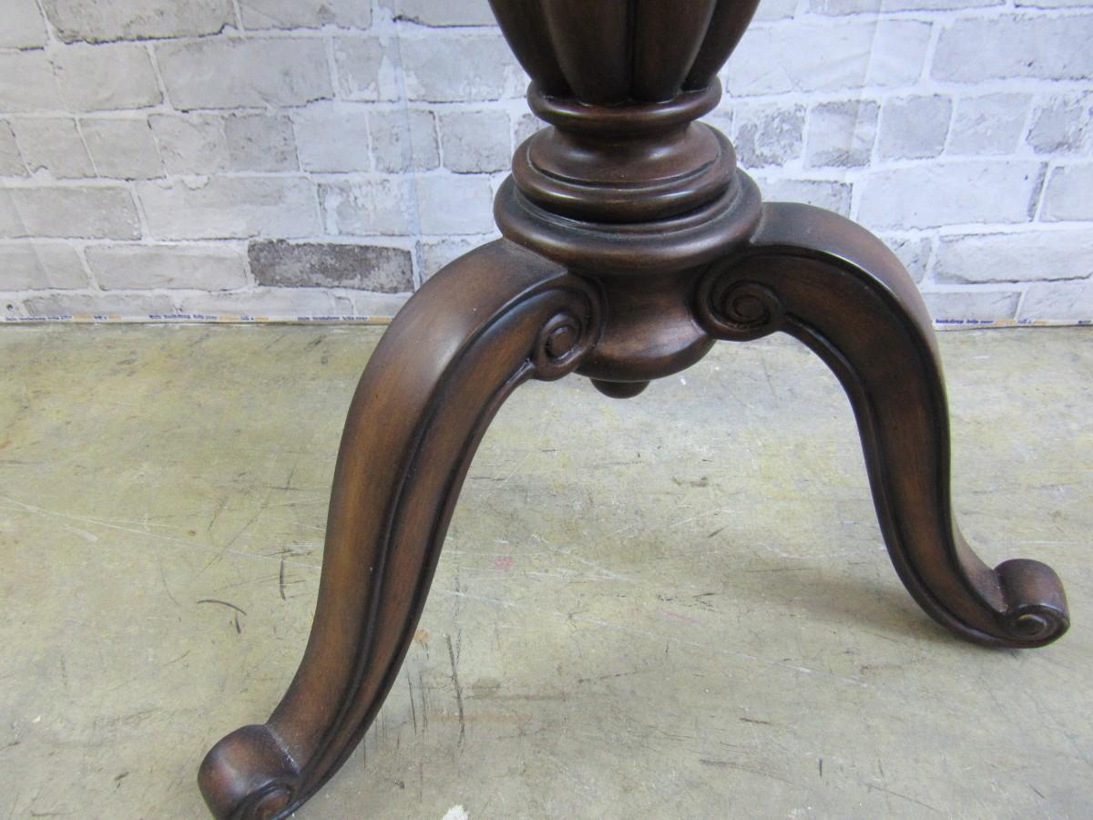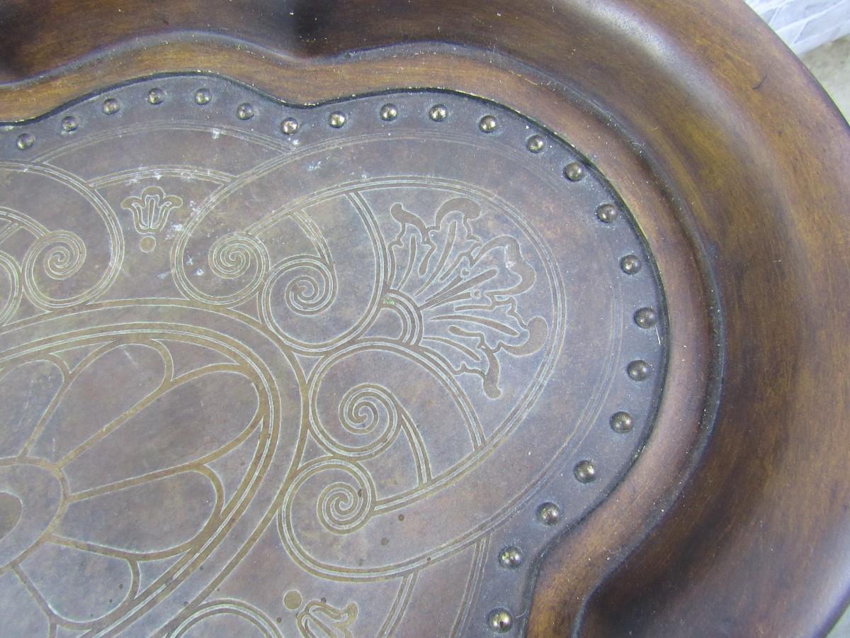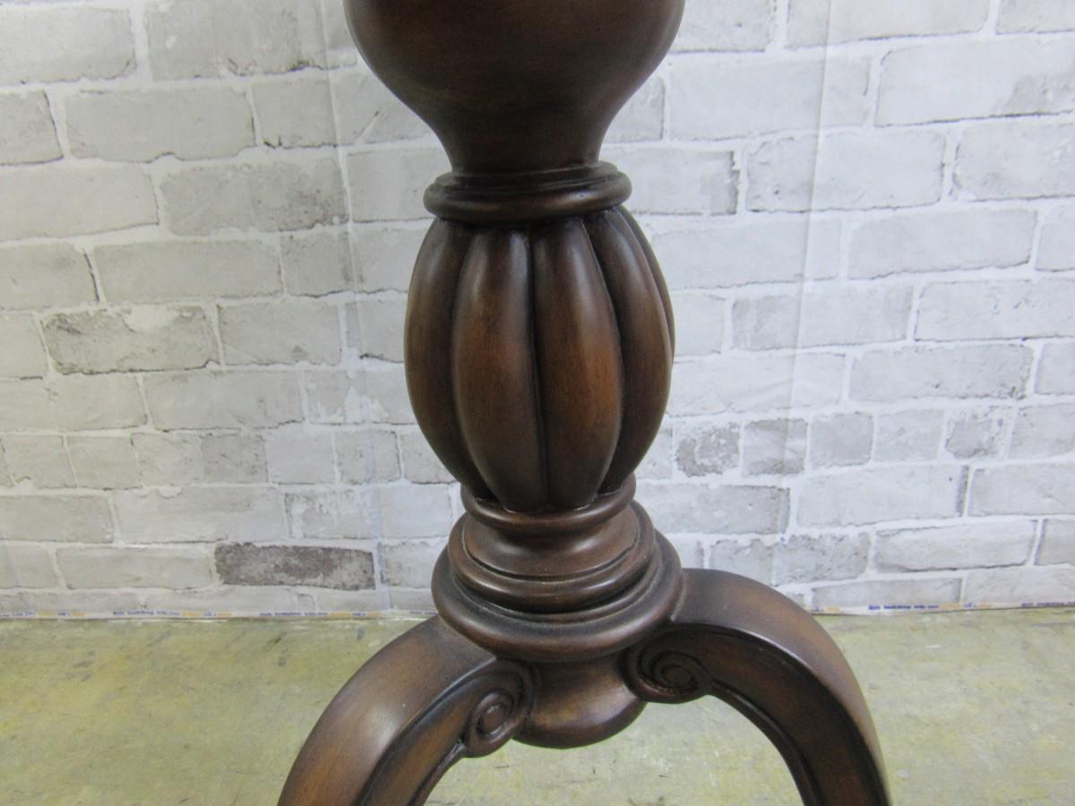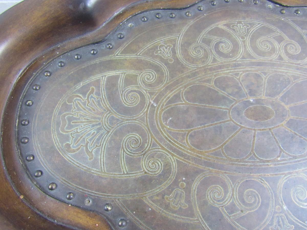 Scalloped Edge Accent Table with metal Inset Top & Nail Head Trim. 26" wide x 18" deep x 26 1/2" high.