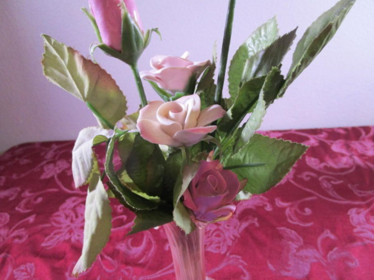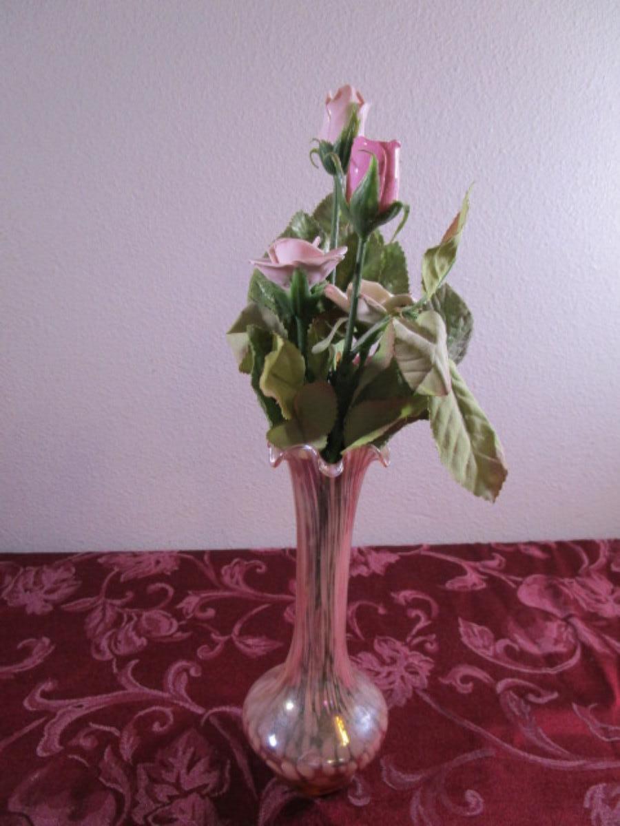vase is 7-1/2" tall, whole arrangement is 14-3/4" tall