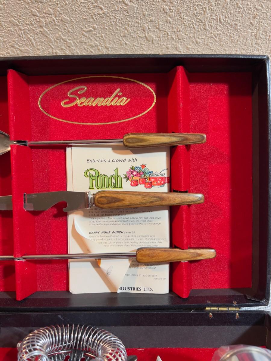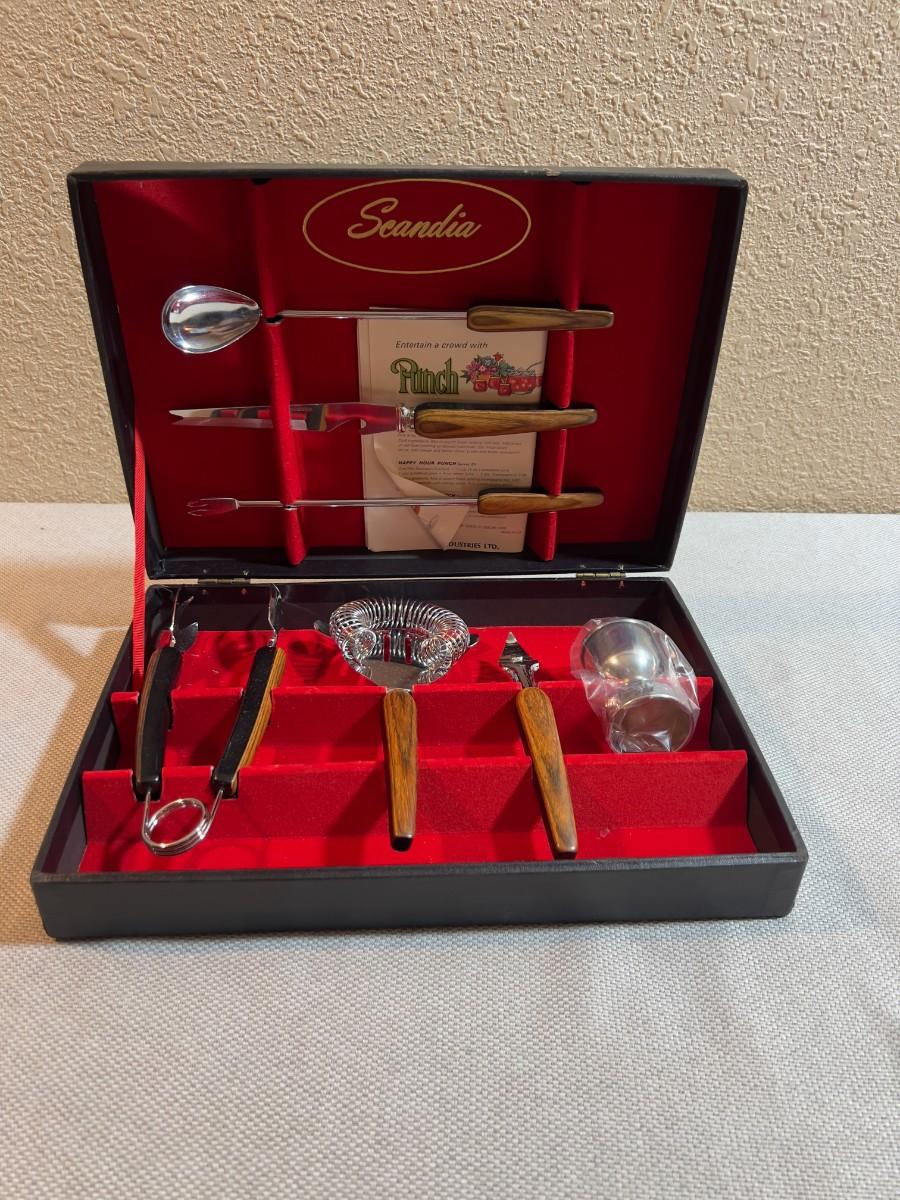 Scandia BAR WARE SET With ROSE WOOD HANDLES IN BOX