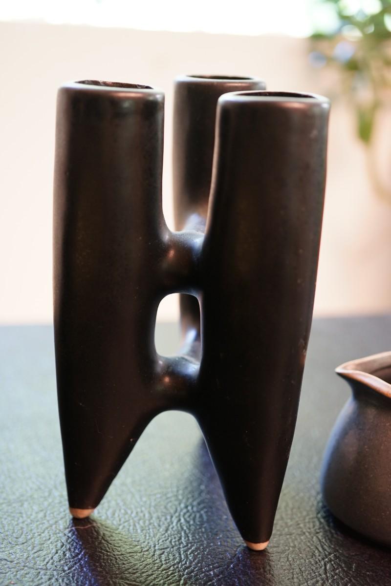 swedish ceramic candleholder of three forms height: 8 1/2" good condition
