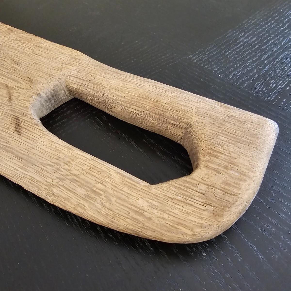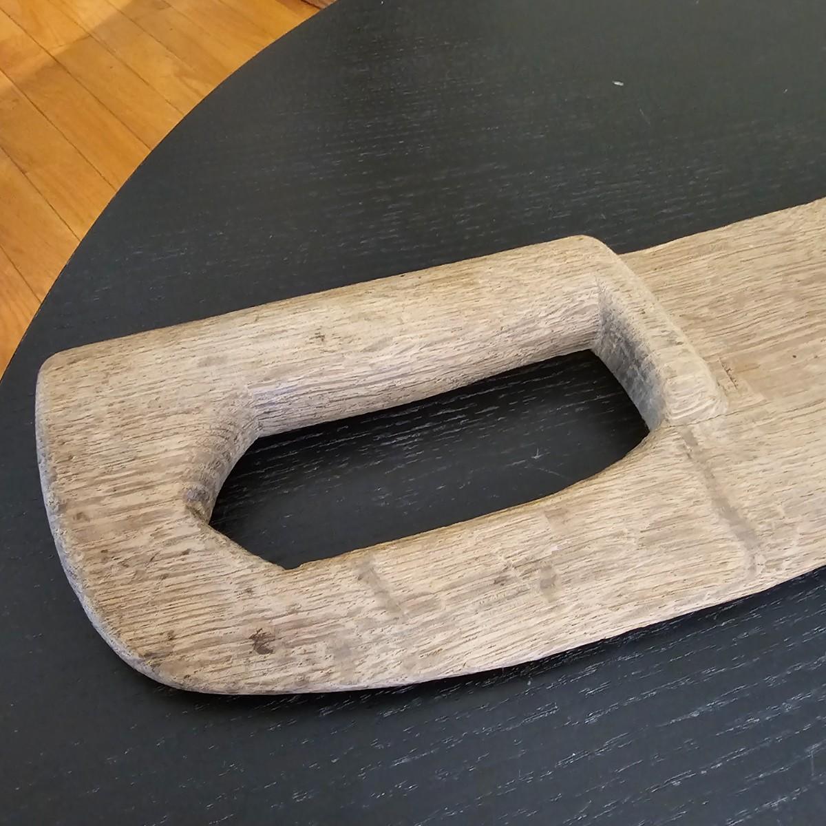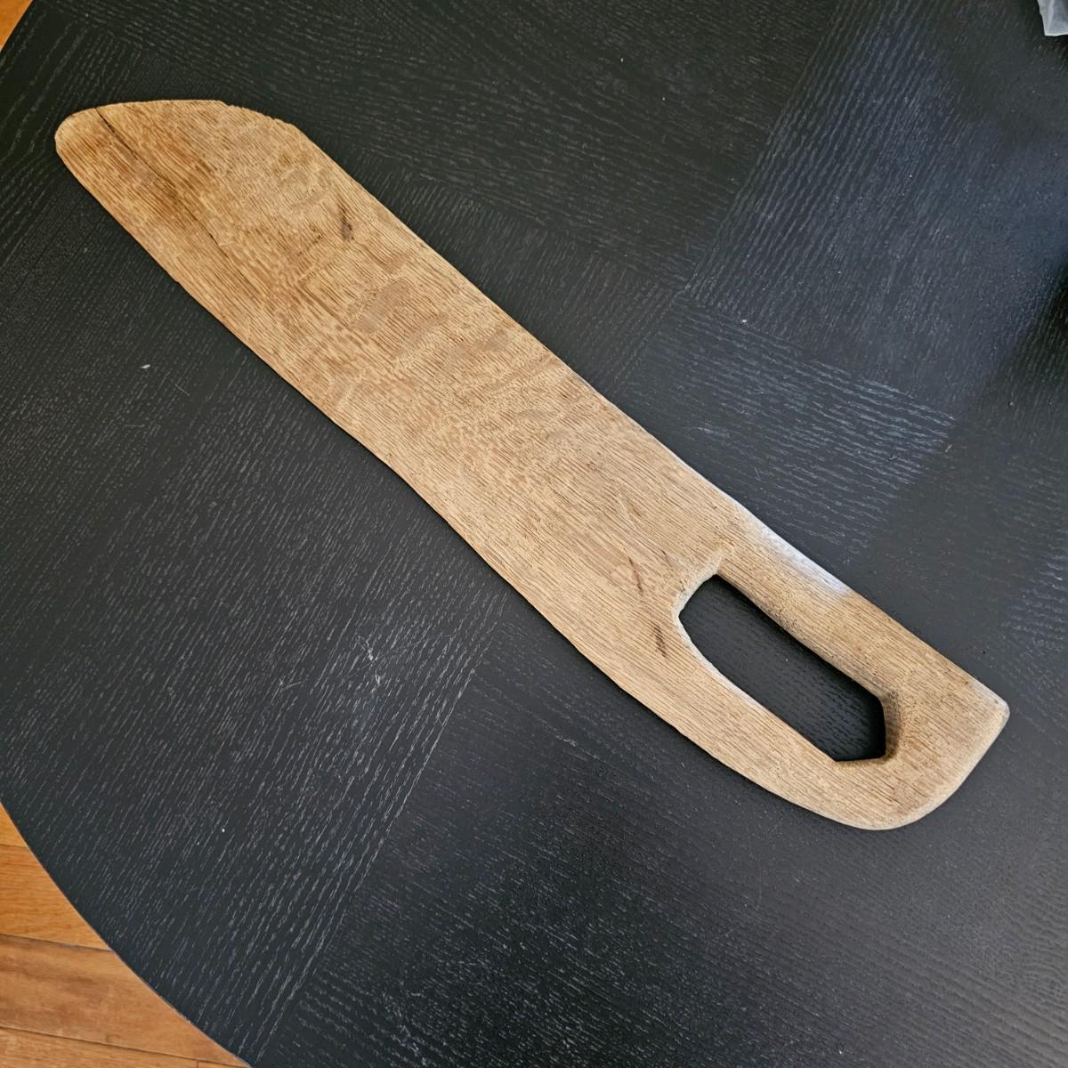Vintage handmade wooden flax knife for breaking up fibers for use. Possibly made in Scandinavia. Knife has handle to hold securely while in use. Knife measures 4.5" x 24" long. Some small cracks along blade. See photos for details. Shipping available.