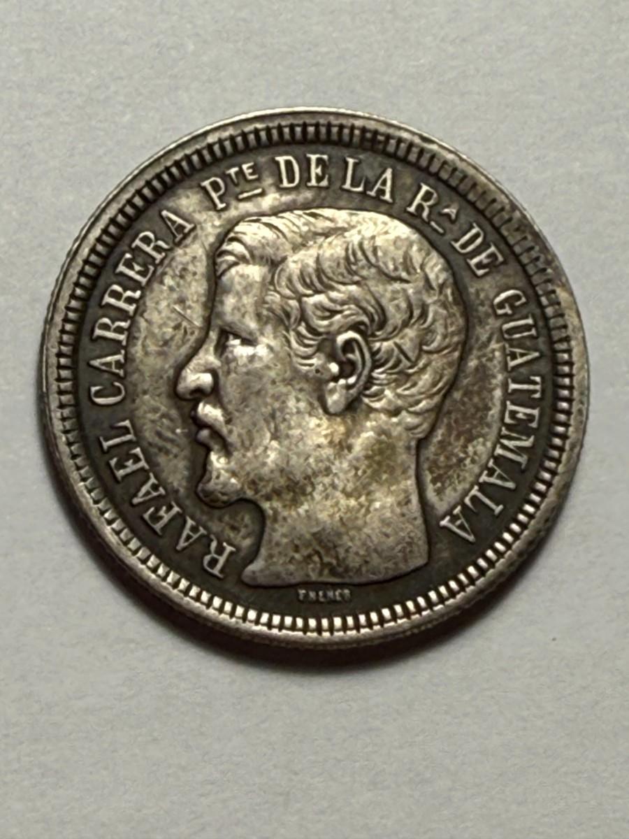 Scarce 1865-R Guatemala 2 Reales Silver Coin in VF Condition as Pictured. $5 DOMESTIC SHIPPING.