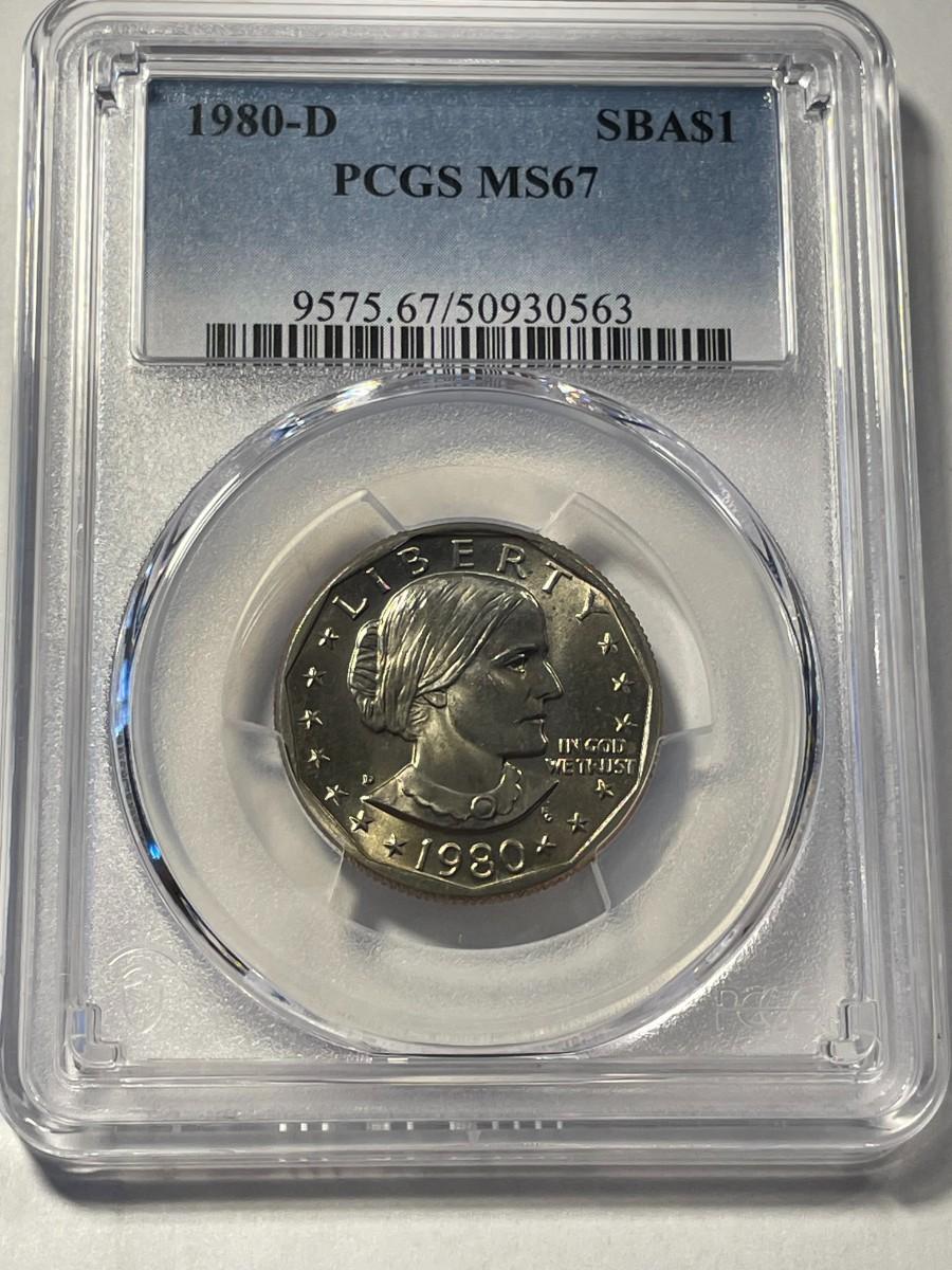 SCARCE PCGS CERTIFIED 1980-D MS67 SUSAN B. ANTHONY DOLLAR FRESHLY GRADED. FREE DOMESTIC SHIPPING.