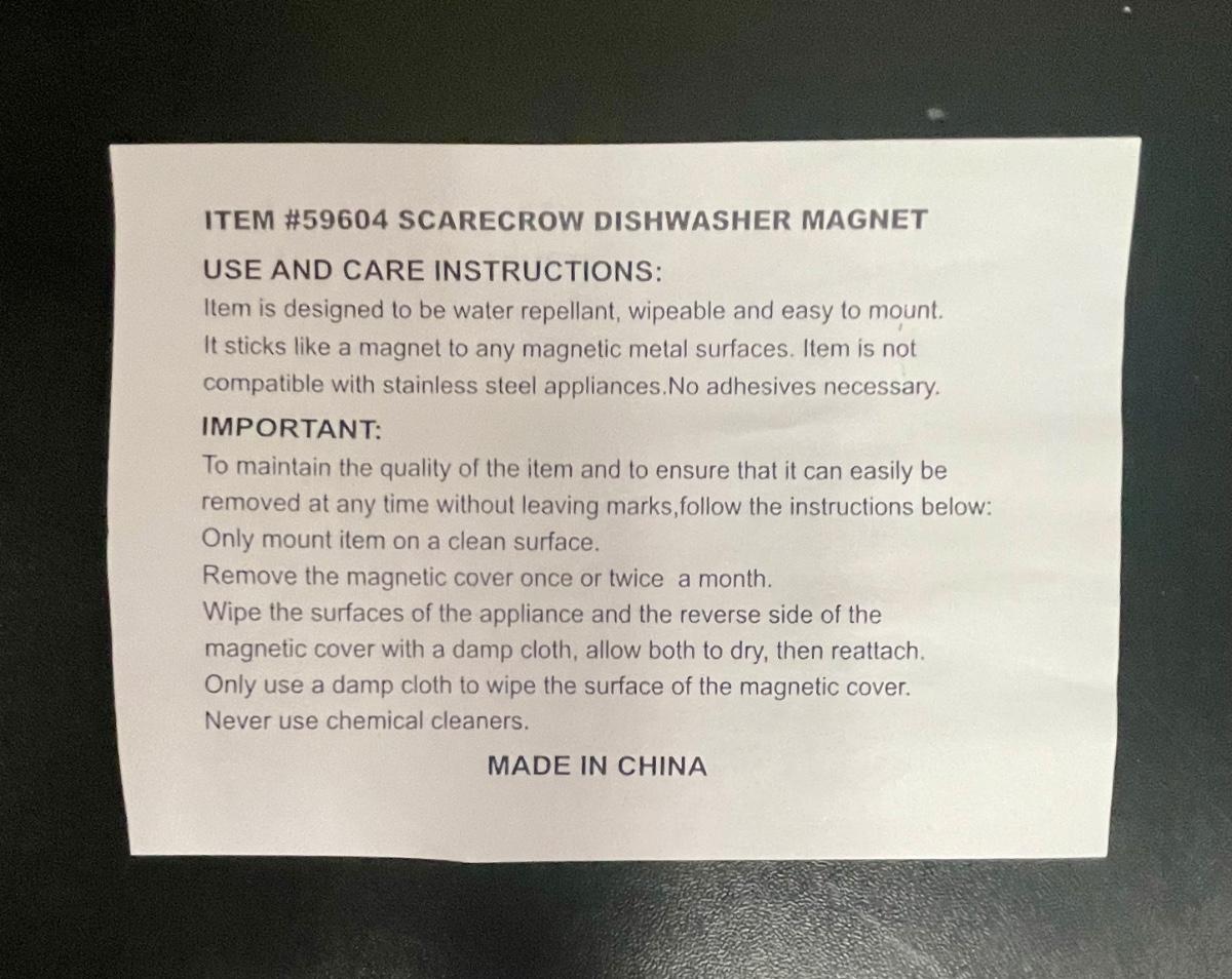 Approx. 24” x 24”, new in box. Designed for sticking to a dishwasher door, but could also attach to a classroom’s metal door.