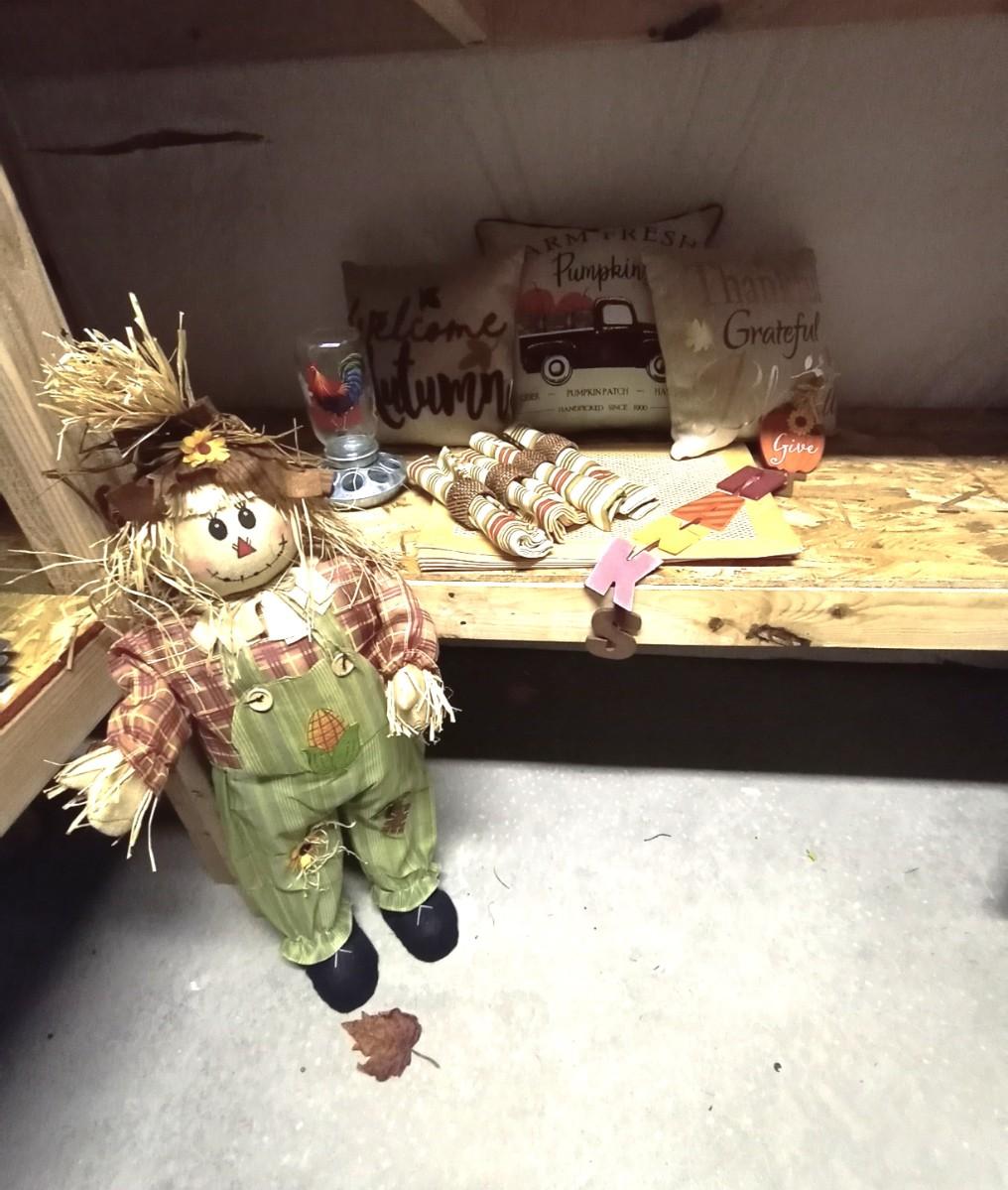 SCARECROW 33" TALL-FALL THROW PILLOWS-WOODEN THANKS AND FALL, BIRD FEEDER,