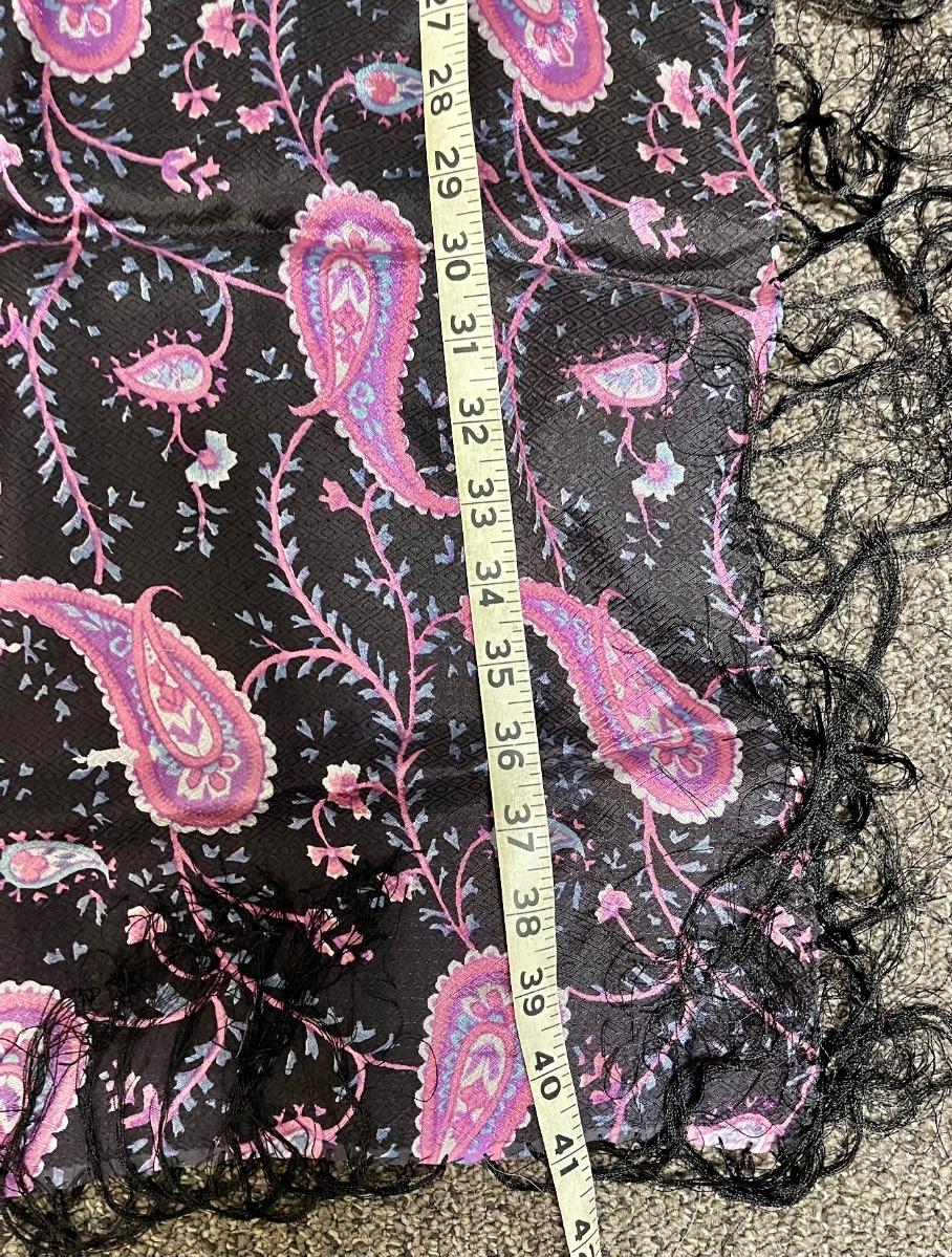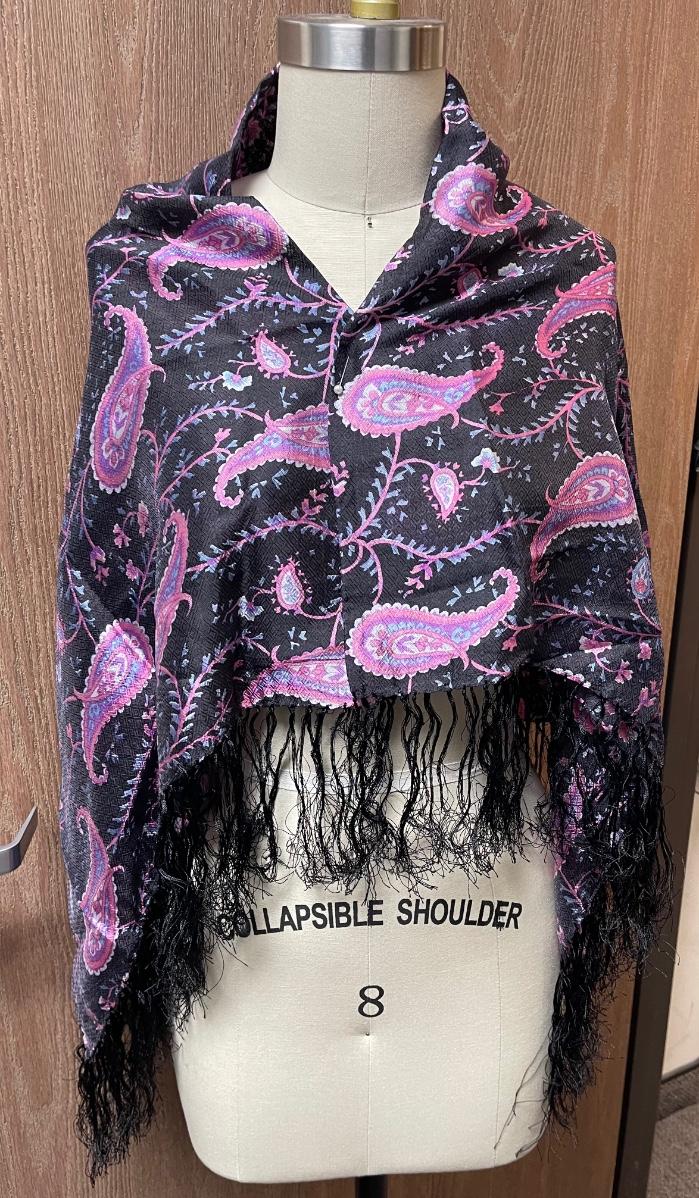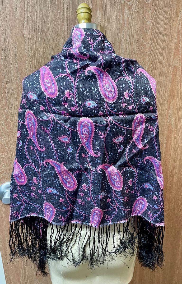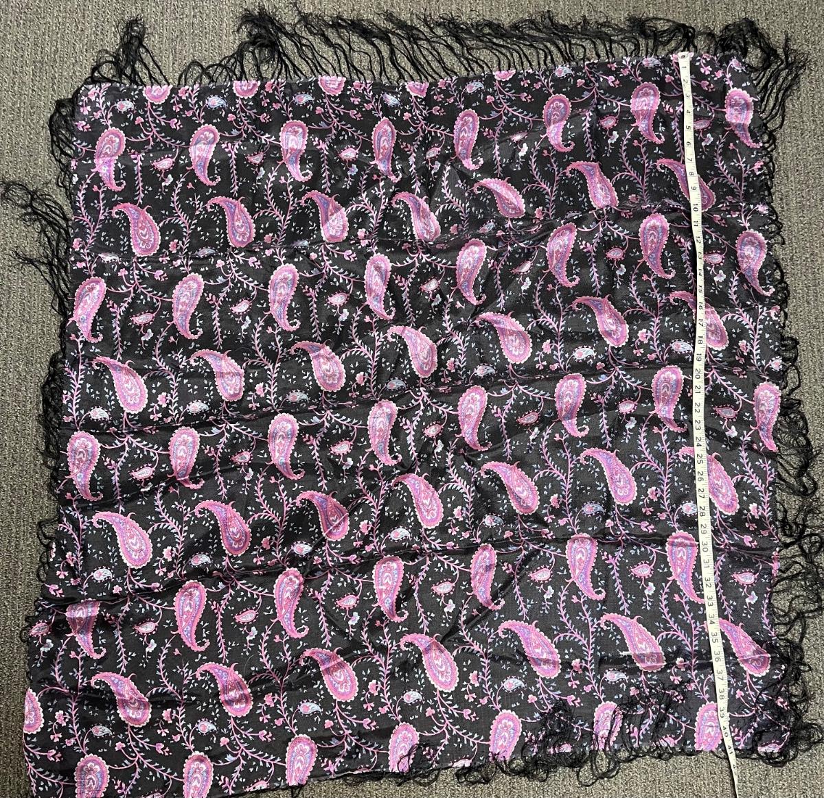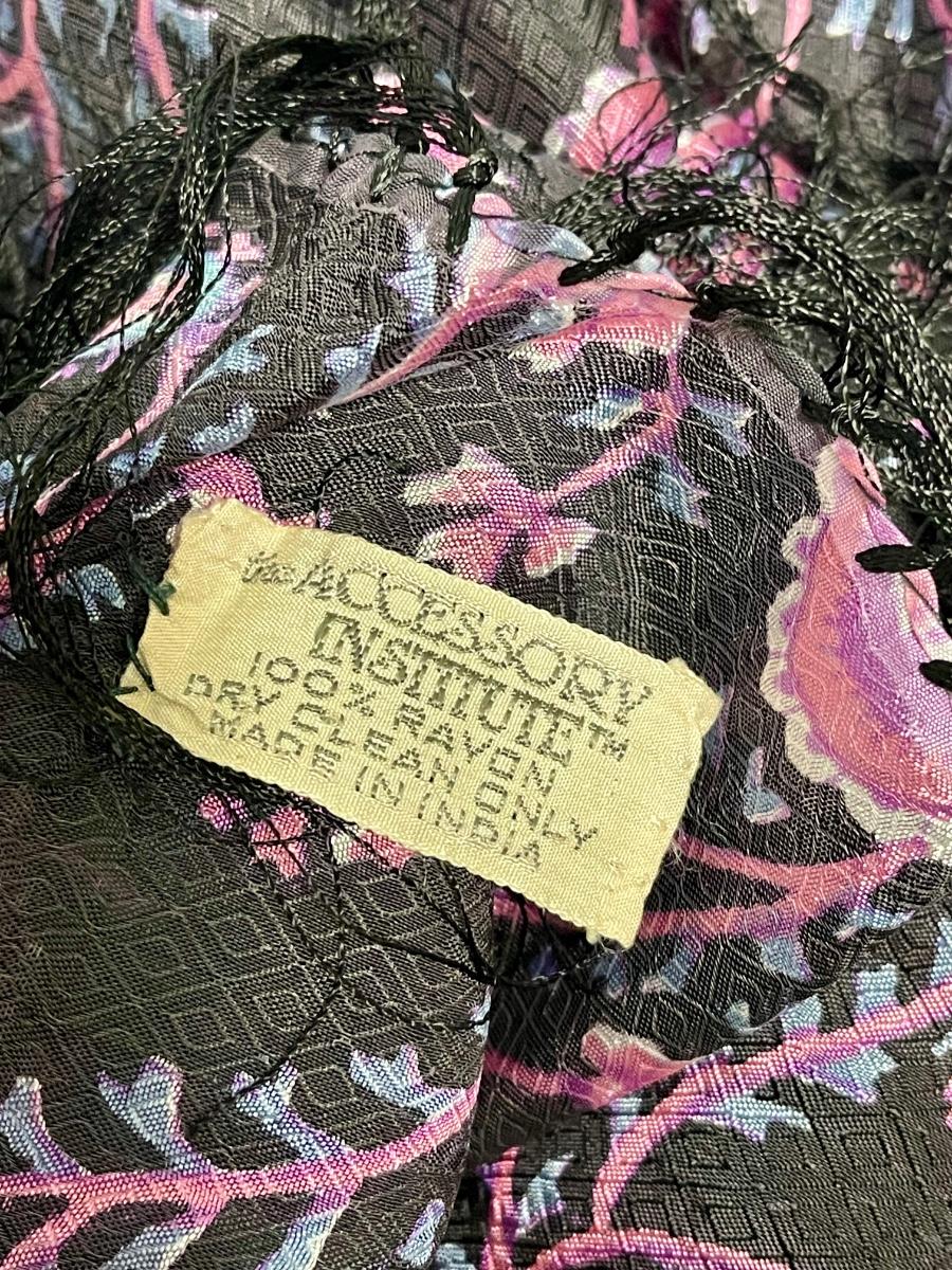 Made by Accessory Institute in India. 100% rayon. Approx 42" x 42".