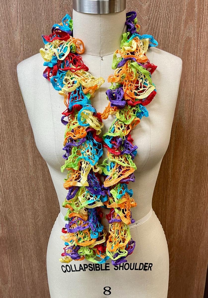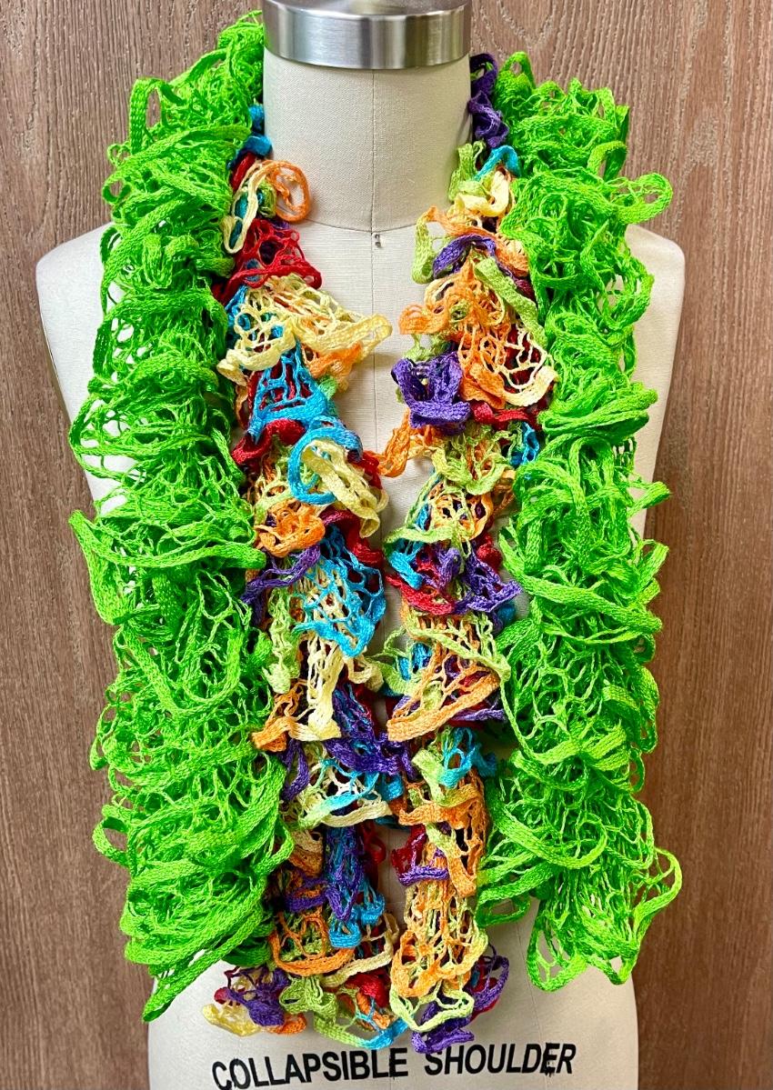 Scarf lime green and multi Elegant Curly Scarf multicolor Spring, Summer, Autumn, Throughout The Year.