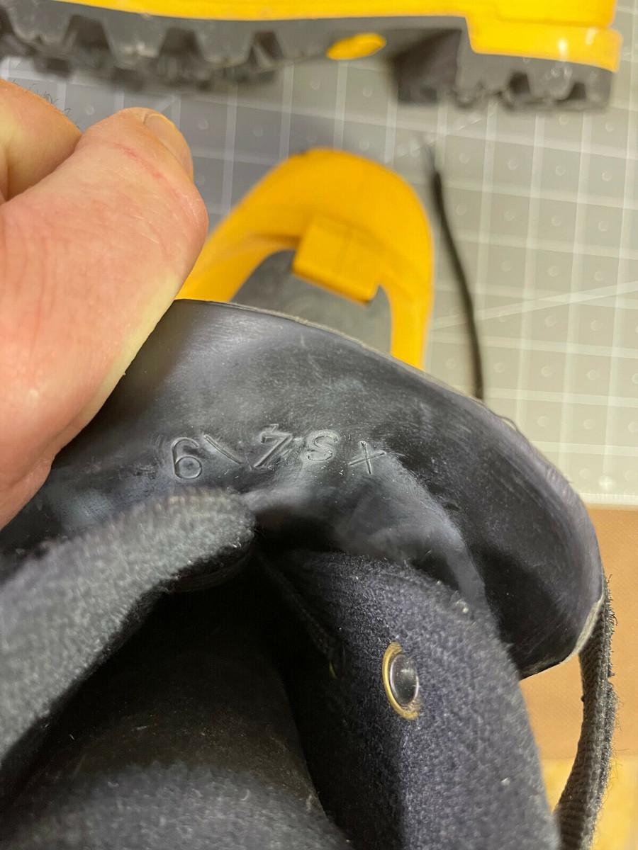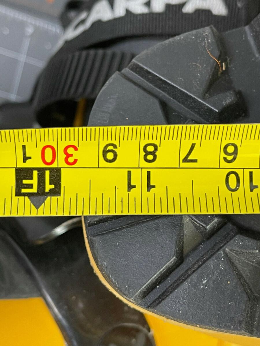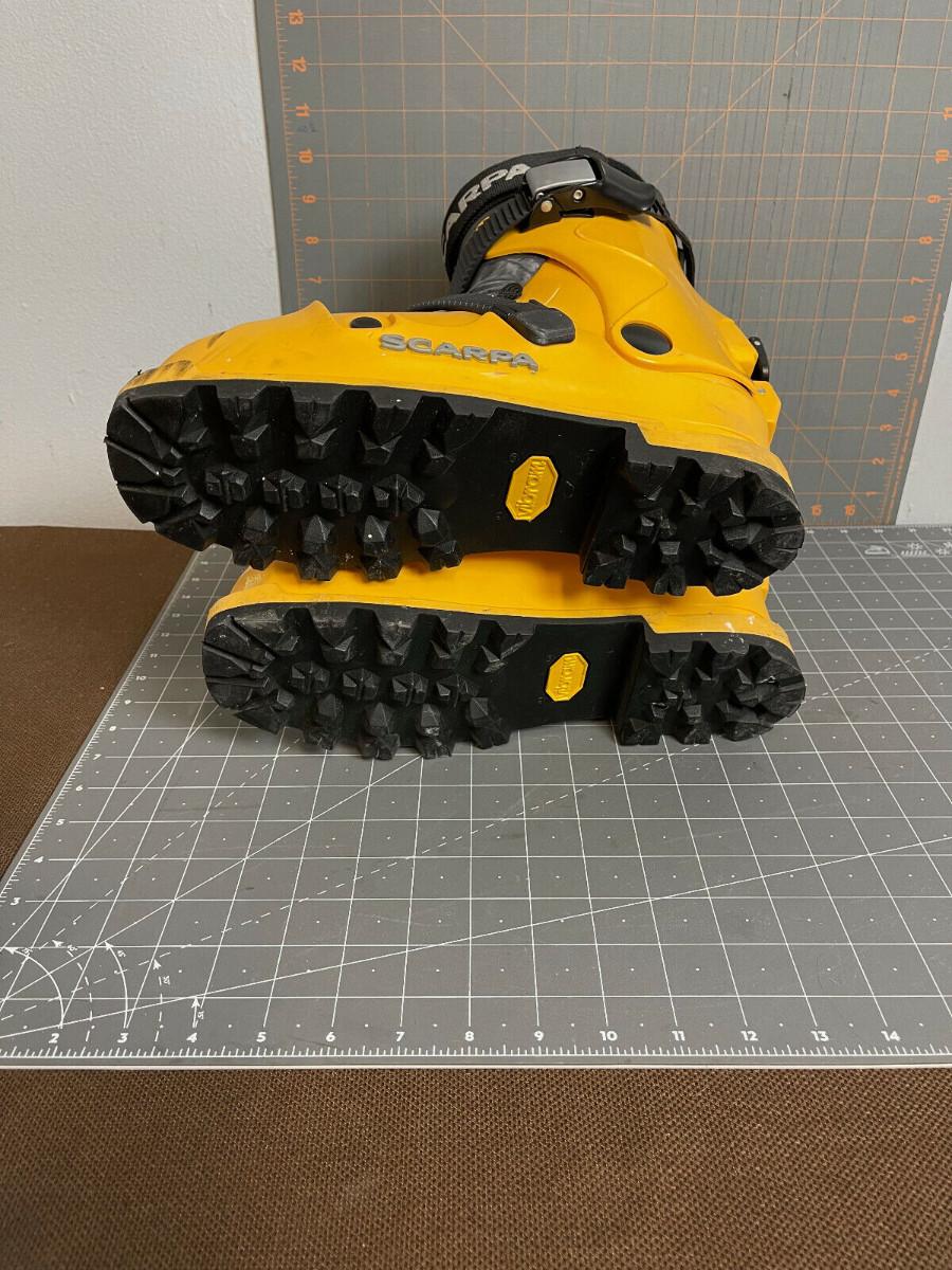 SCARPA Mountaineering Boots ““ Yellow. Men’s Size: Marked tongue - 6/7 SX 9-3/8 inside 11-1/2 heel to toe outside. Light wear minimal use. Shipping Weight is 8 pounds.