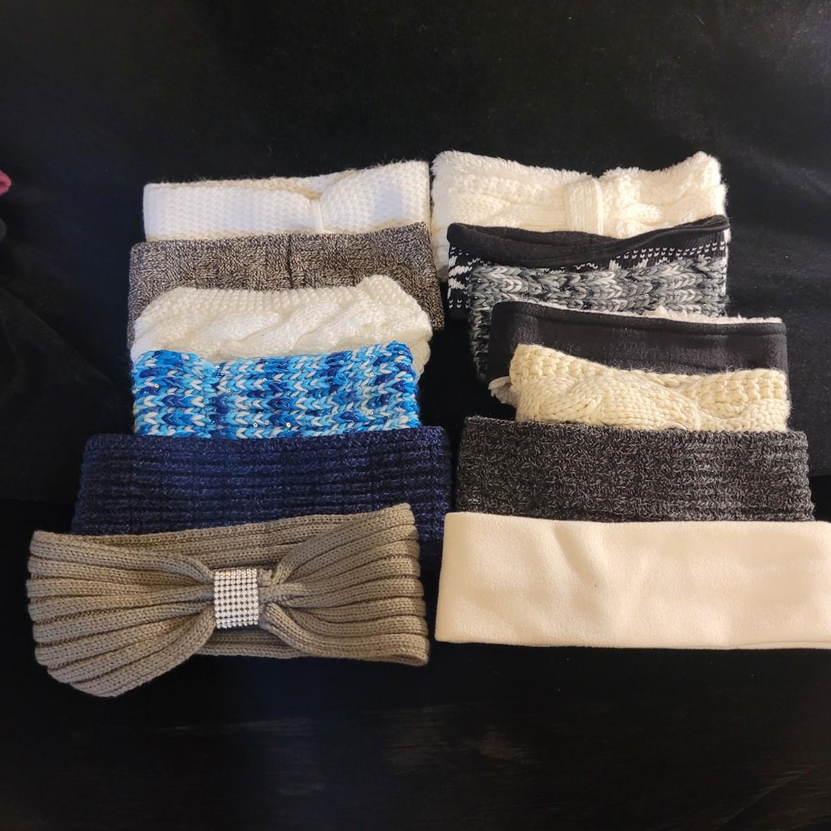This large lot of women’s winter accessories includes acrylic and fleece scarves and circle/infinity scarves, hats, earmuffs, headbands, and a large variety of gloves. Please see photos for details. Shipping available.