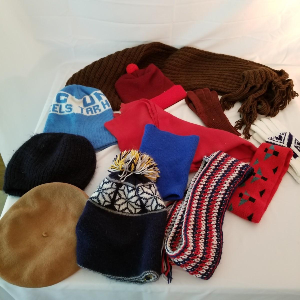 Winter hats gloves and scarves, various colors and styles. See photos for detail. Shipping available.