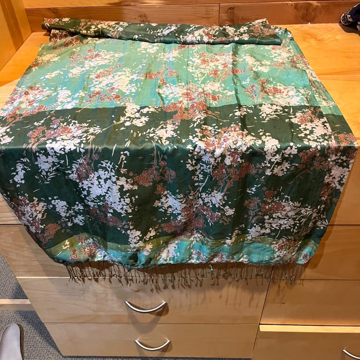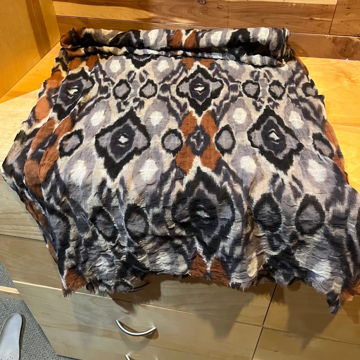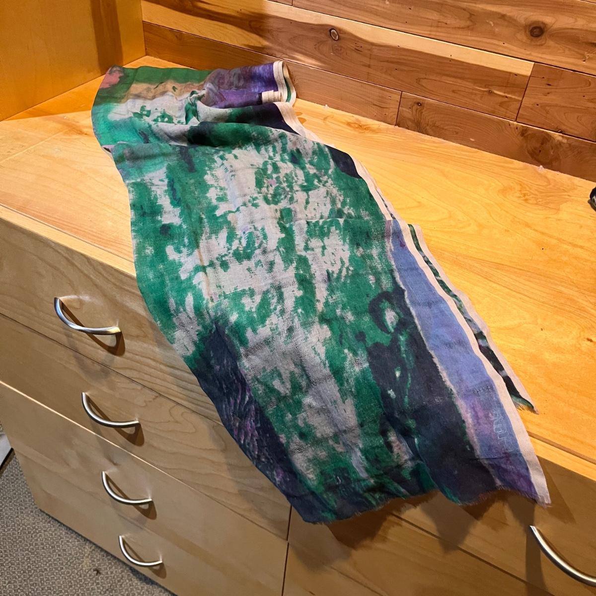 Lot includes two ladies hats and an assortment of scarves. Scarf brands include Eileen Fisher, Boll and Branch, Banaris, and more. Scarves are made from a variety of materials including wool, cotton, pashmina and silk.