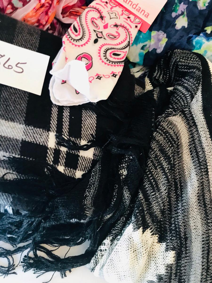 On clothing: New, some with tags! Please see photos for quantity, colors, size, and condition. Please, also most items are Large or XL in women's clothing.