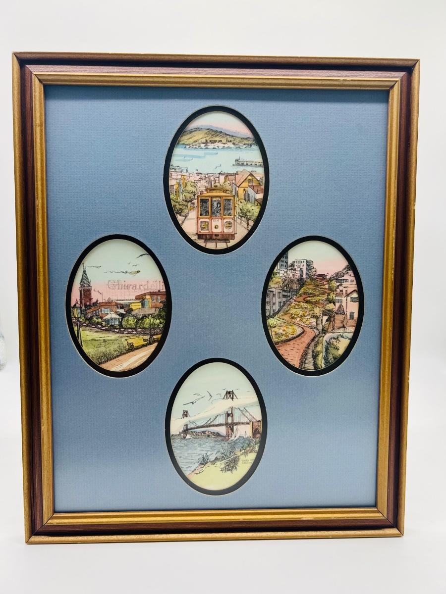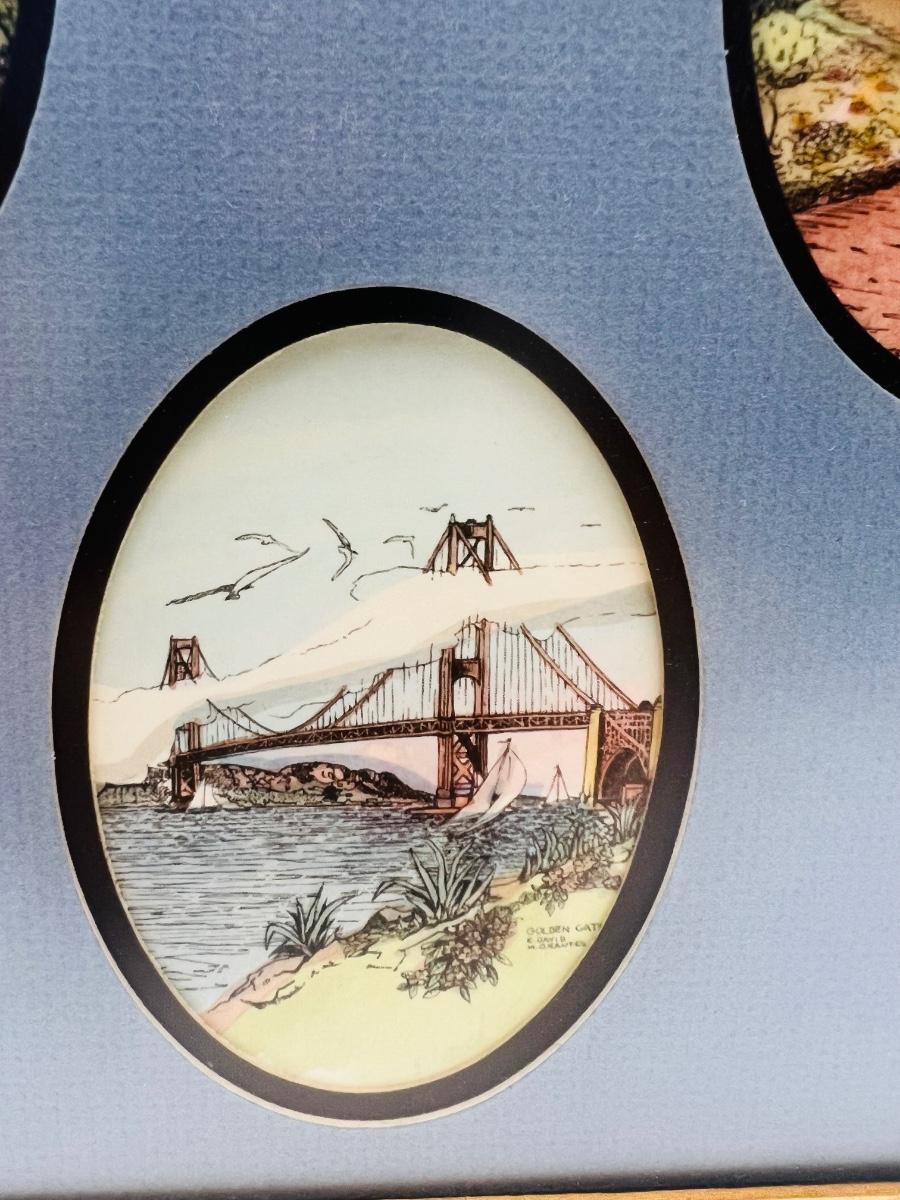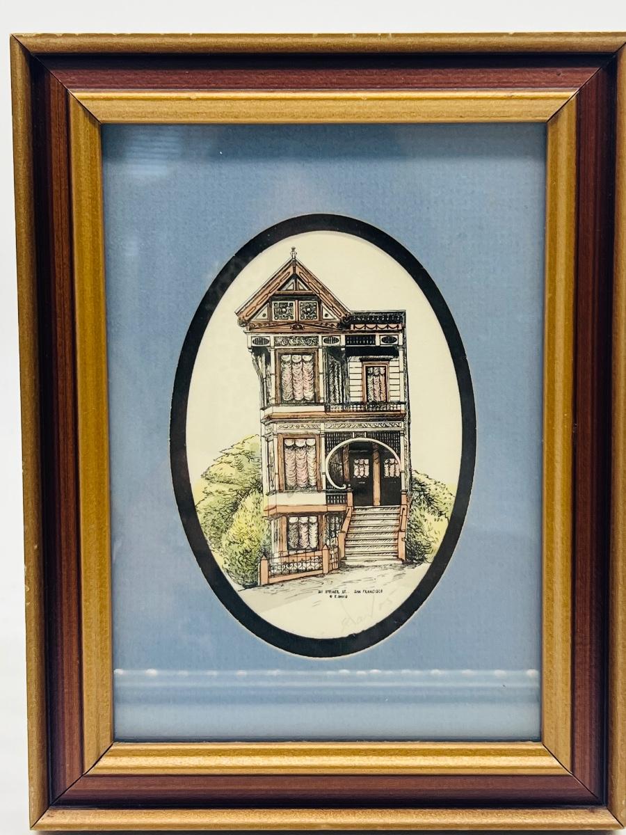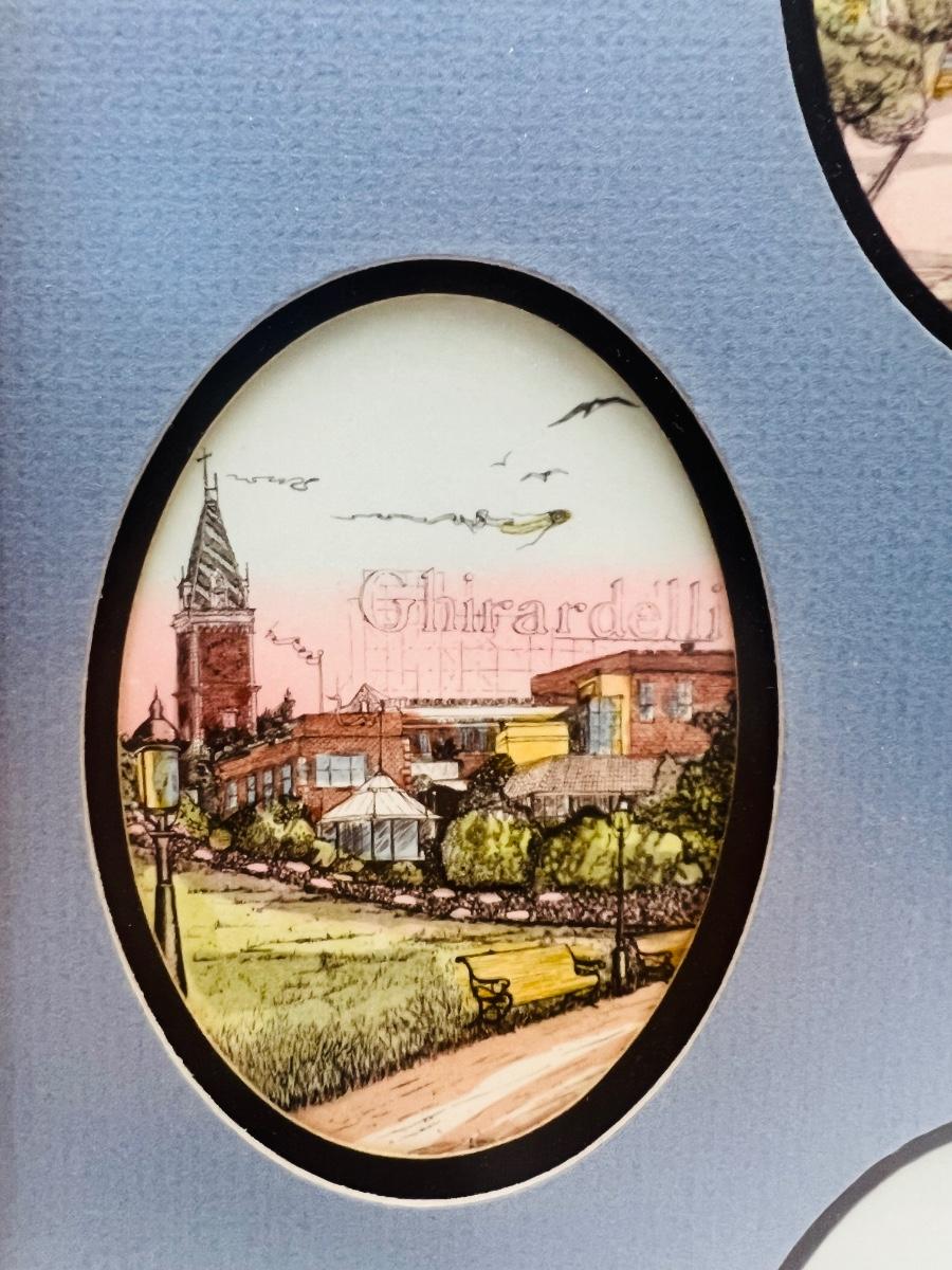 Professionally framed and matted by Changing Times scenes from San Francisco by Eileen David signed 1985 largest measures 13 1/2 inches tall by 12 1/2 inches wide smaller to measure at 8 1/2 tall by 6 1/2 wide