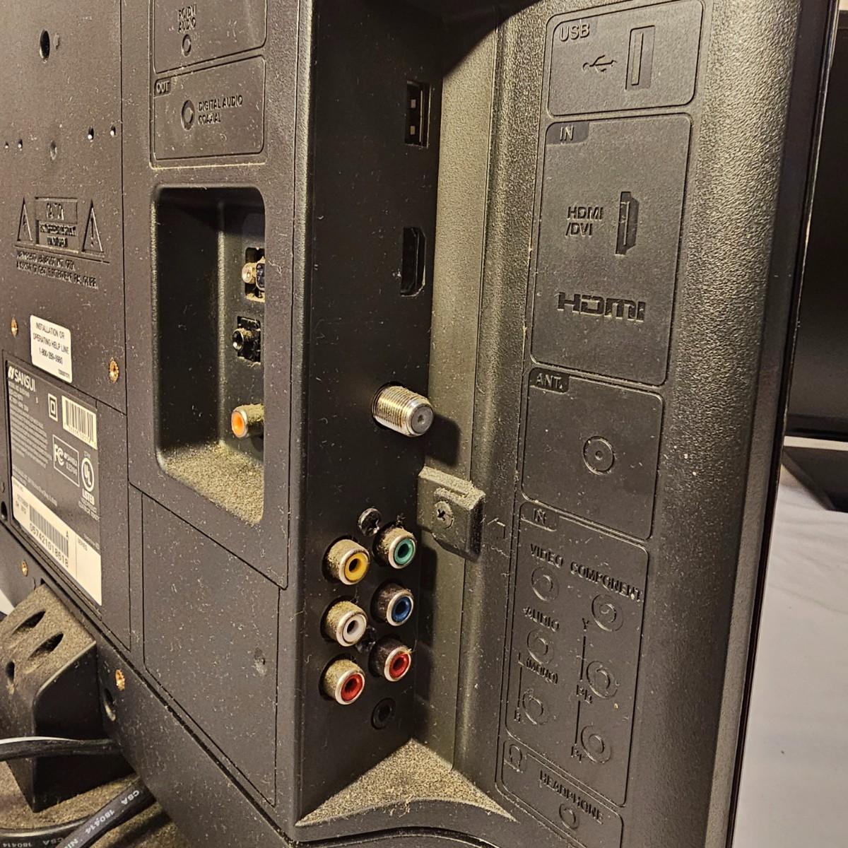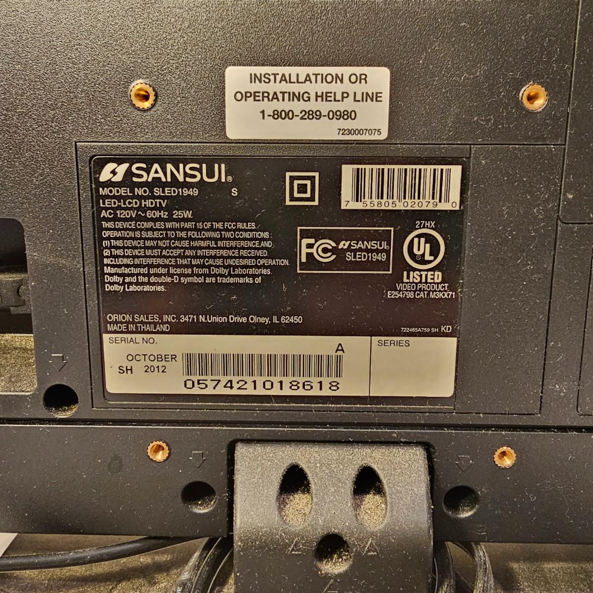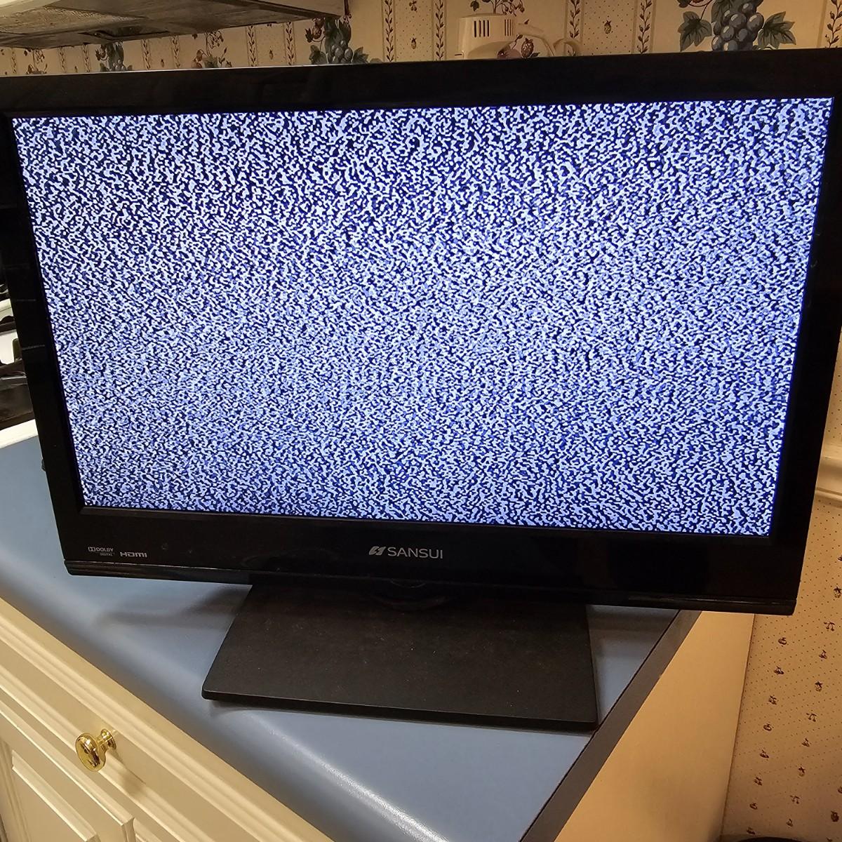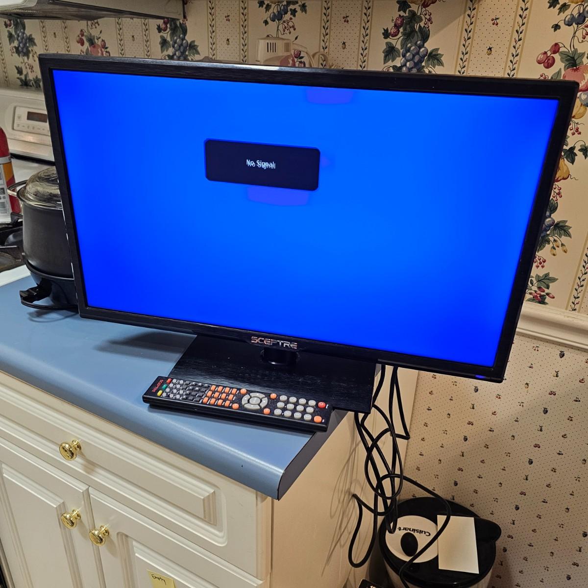 A pair of smaller tabletop size televisions. The Sceptre is a 23" diagonal LCD tv with built in DVD player and remote control. Also has additional plug ins on back and bottom. Measures 7" x 21" x 14"H. The Sansui has an 18" diagonal screen, is LED/LCD tv, measures 6.5" x 17" x 13"H. No remote with this unit. Also includes a Midland weather radio with manual. All items powered on when plugged in. Midland unit worked on AC, batteries in back fully corroded. See photos for details. Local pickup only.