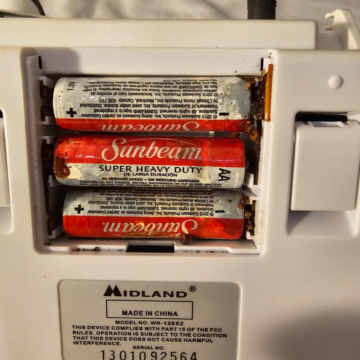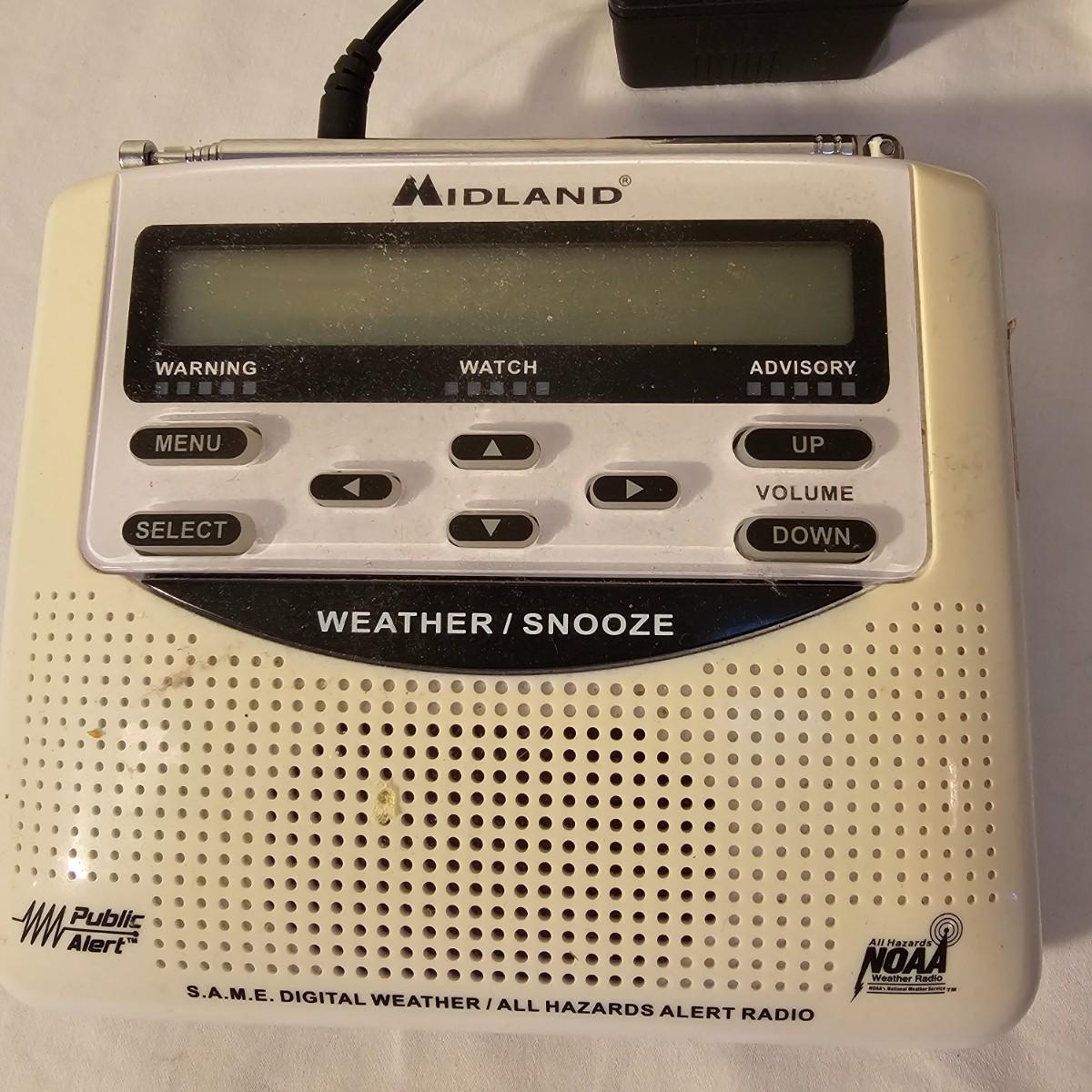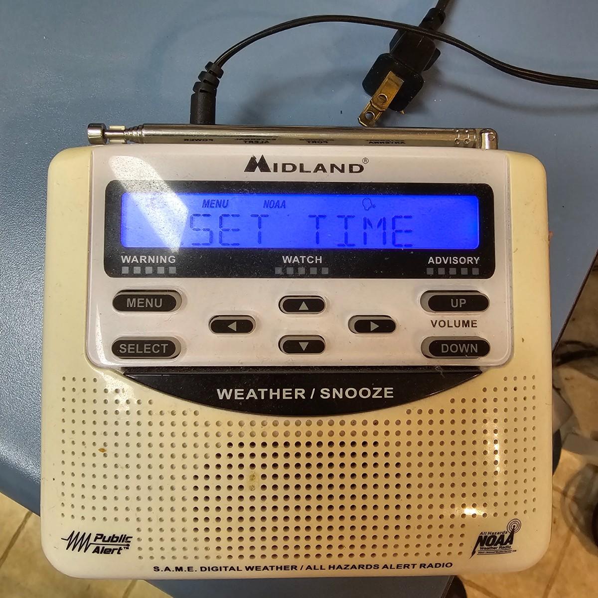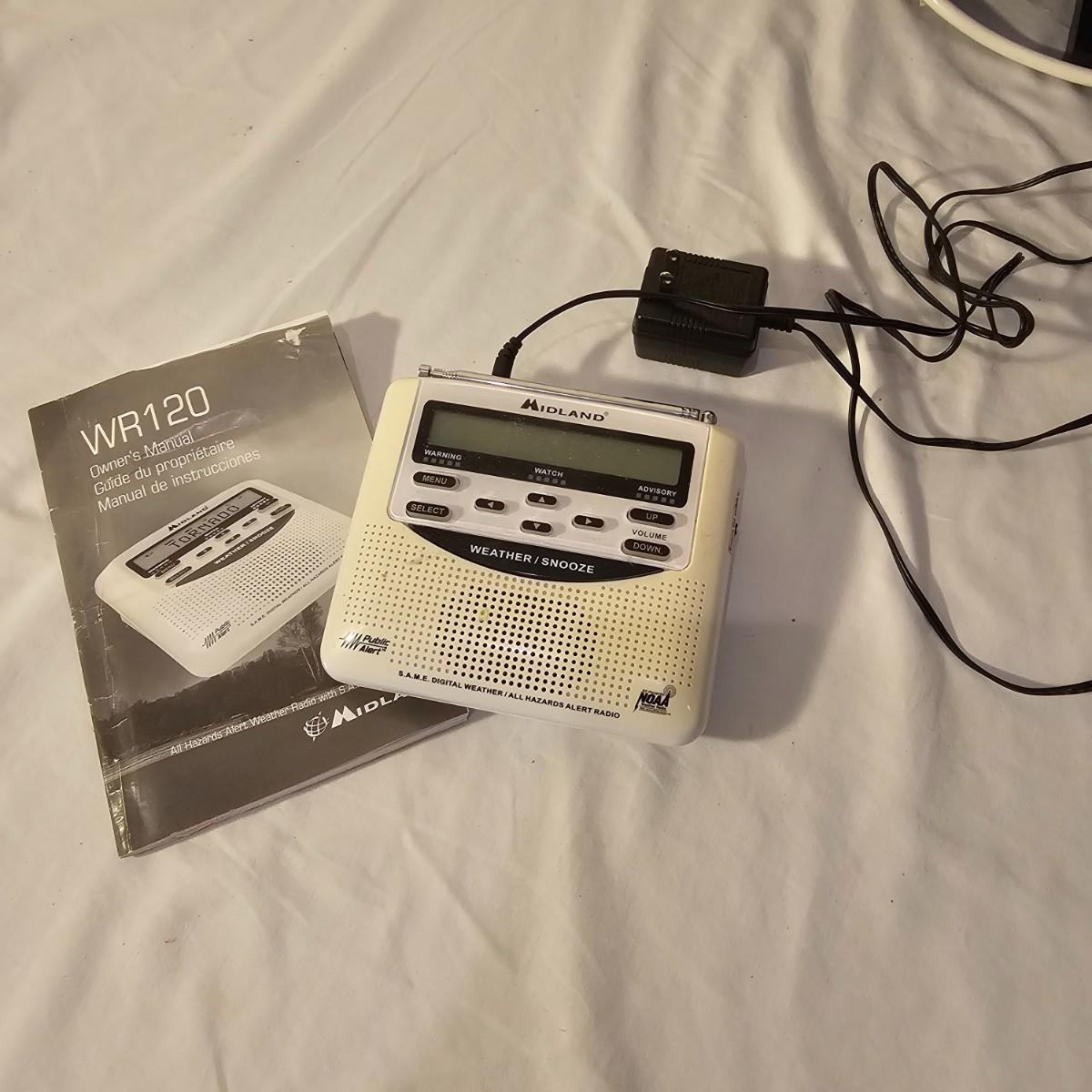 A pair of smaller tabletop size televisions. The Sceptre is a 23" diagonal LCD tv with built in DVD player and remote control. Also has additional plug ins on back and bottom. Measures 7" x 21" x 14"H. The Sansui has an 18" diagonal screen, is LED/LCD tv, measures 6.5" x 17" x 13"H. No remote with this unit. Also includes a Midland weather radio with manual. All items powered on when plugged in. Midland unit worked on AC, batteries in back fully corroded. See photos for details. Local pickup only.