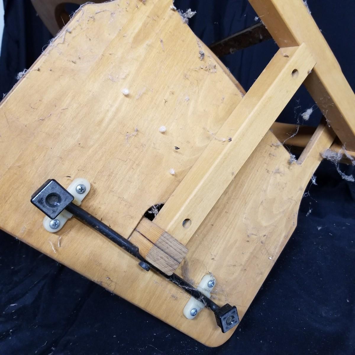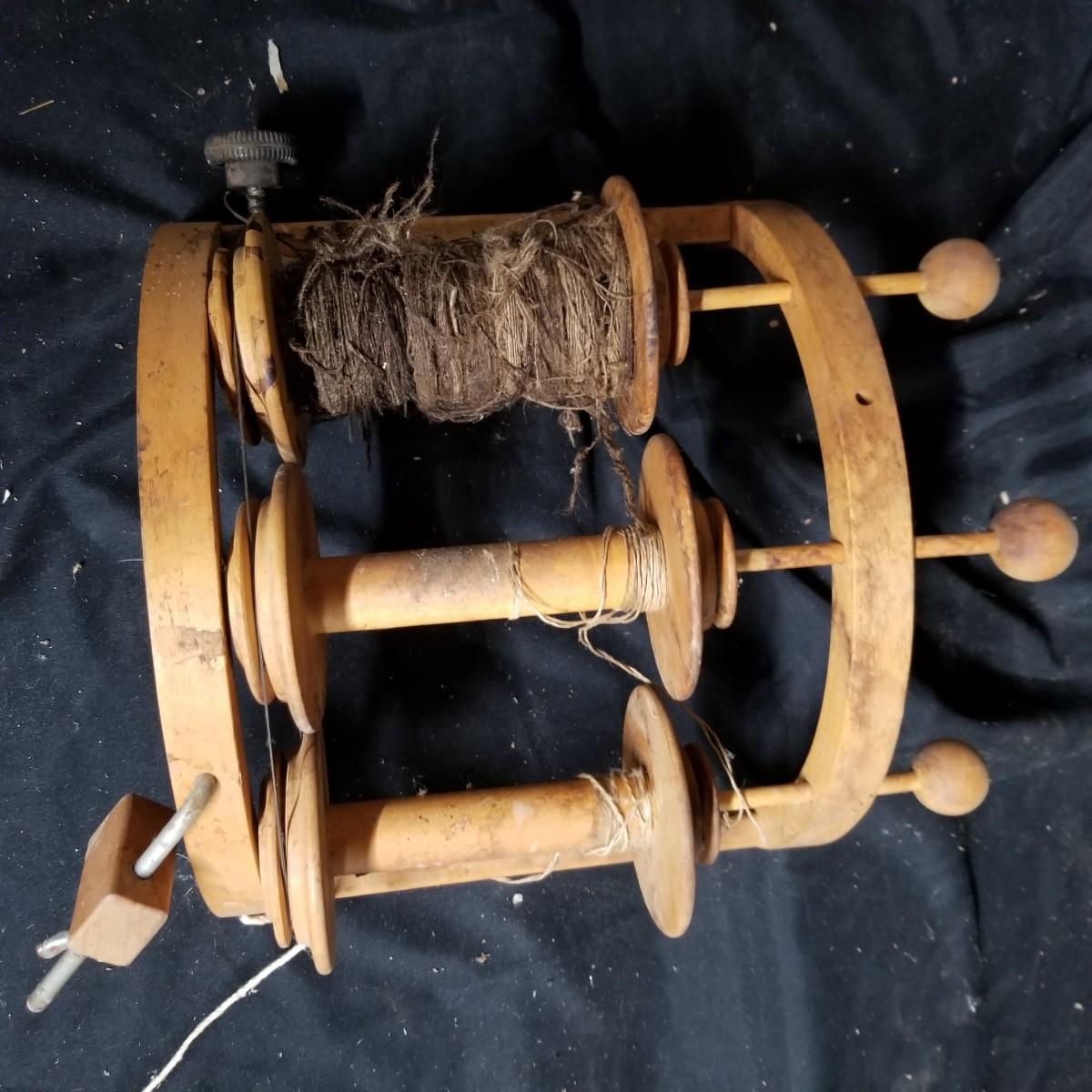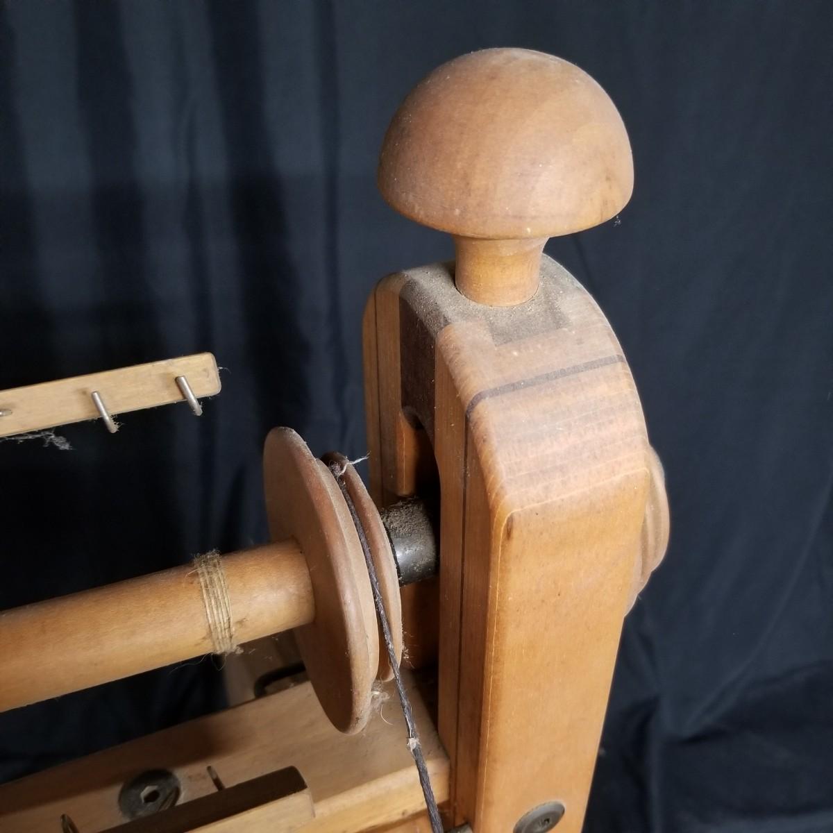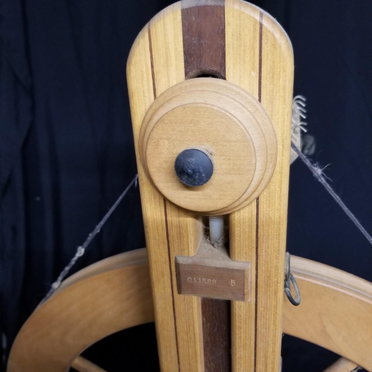 Schacht treadle spinning wheel with four spindle heads. Treadle works smoothly. Wood appears to be maple. Has adjustments for spin tension. Item measures 19.5" x 33" x 17". Wheel is 19.5" d. Local pickup only.