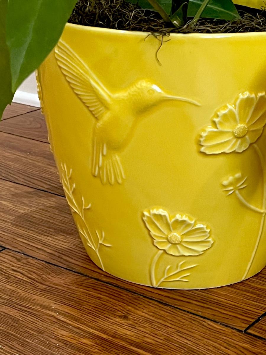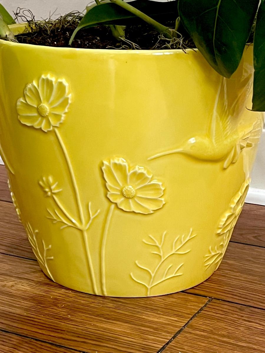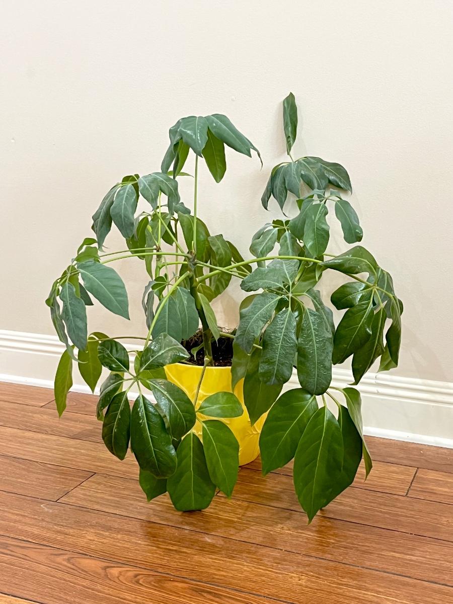 Schefflera Plant ~ In A Yellow Ceramic Flower Pot