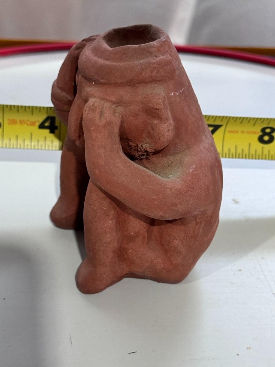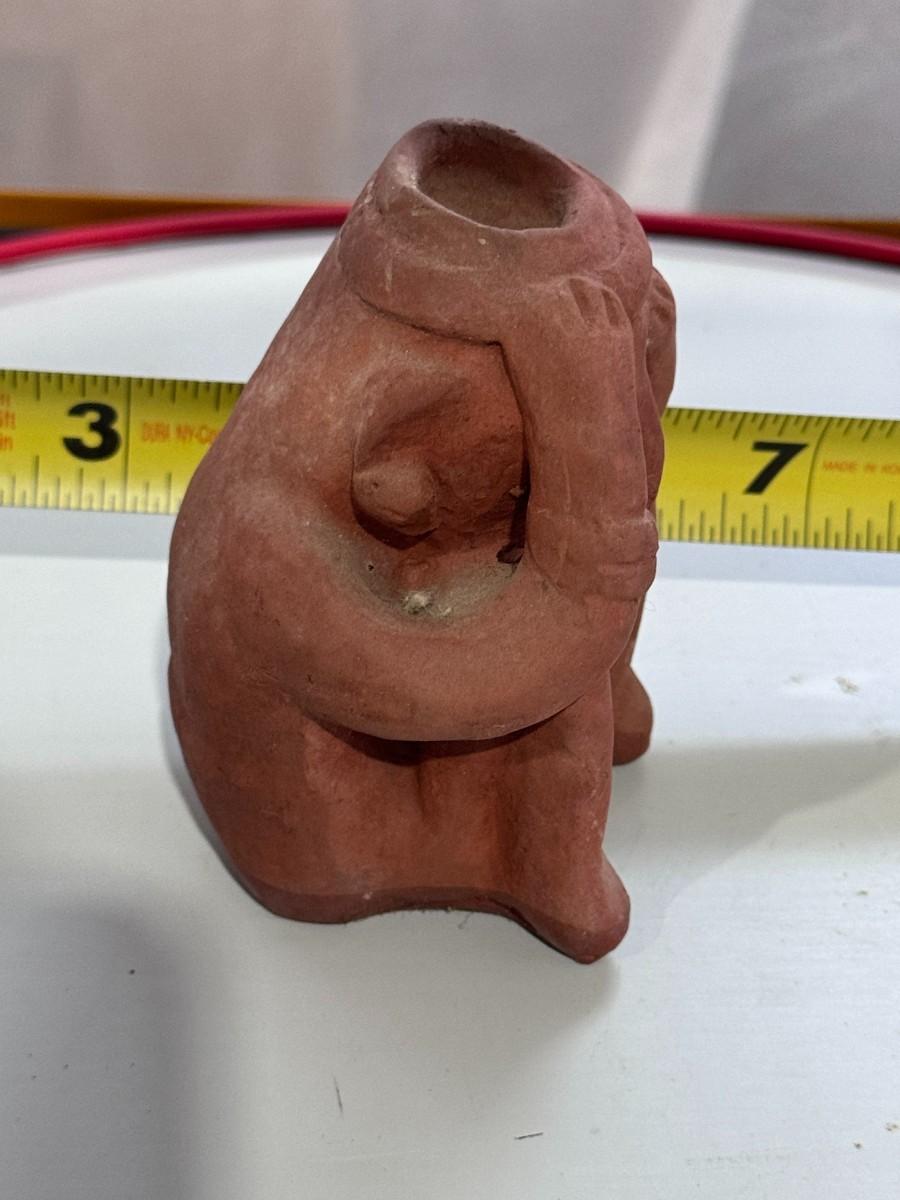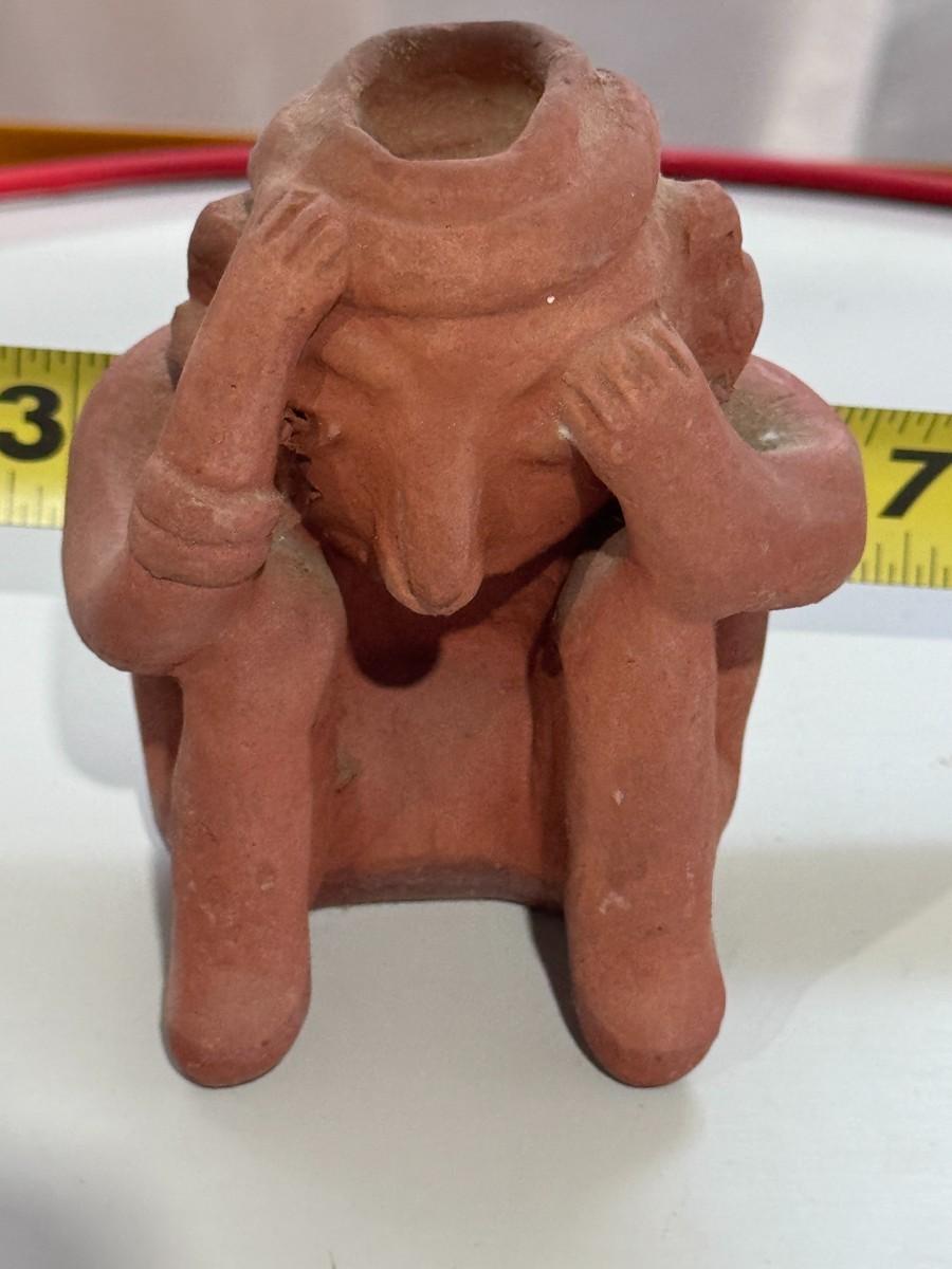 Origin: It is a reproduction of an ancient terracotta figure from Nayarit, Mexico, dating back to approximately 400-800 A.D.
