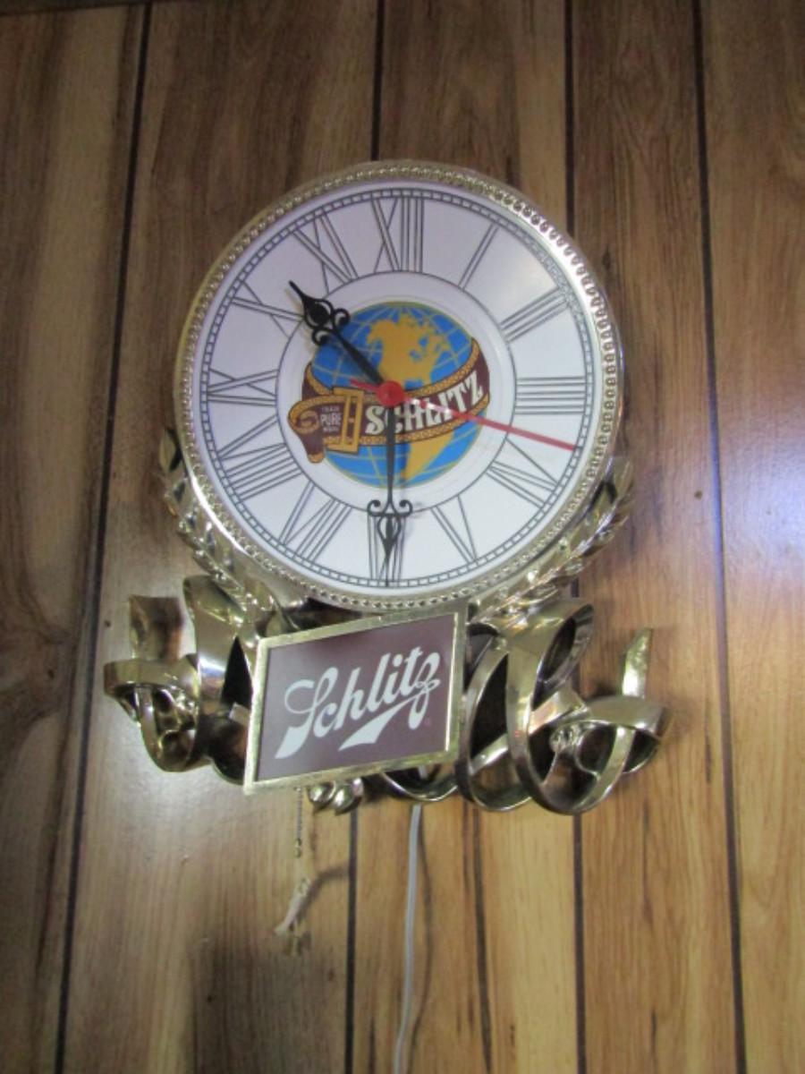 Schlitz Wall Clock. Clock is running, but light is not working- possible burned out bulb.