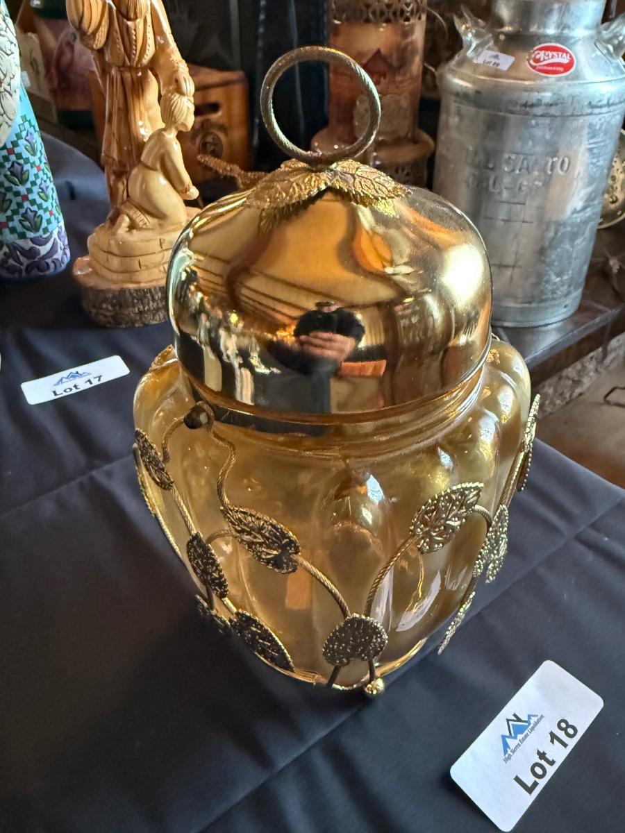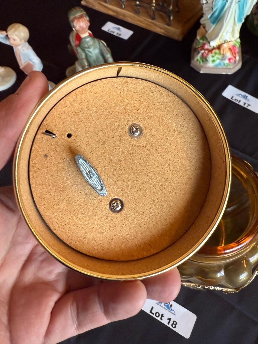 Schmid Brothers Inc. Amber Glass Decanter/Candy Jar/Music Box