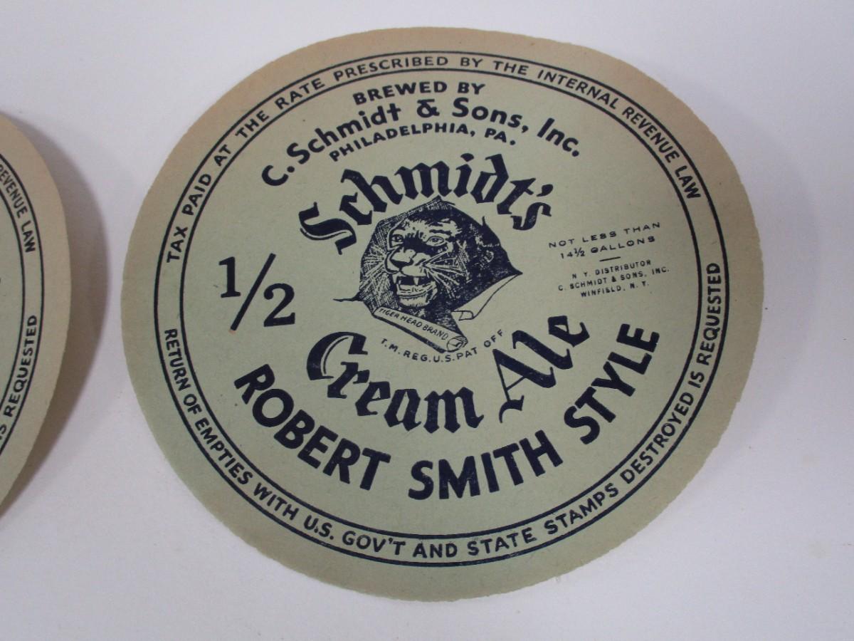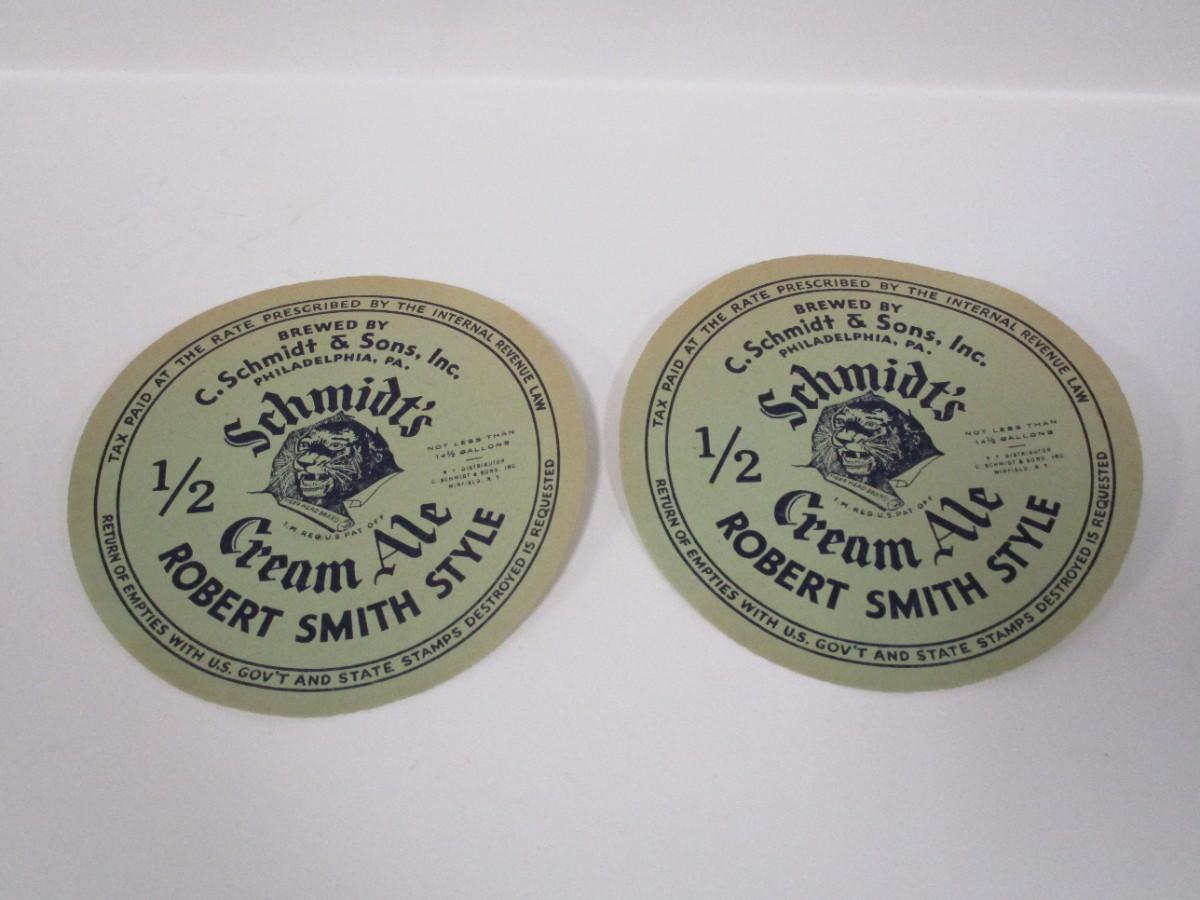 Schmidt's 1/2 Cream Ale Robert Smith Style Beer Keg Labels Philadelphia PA