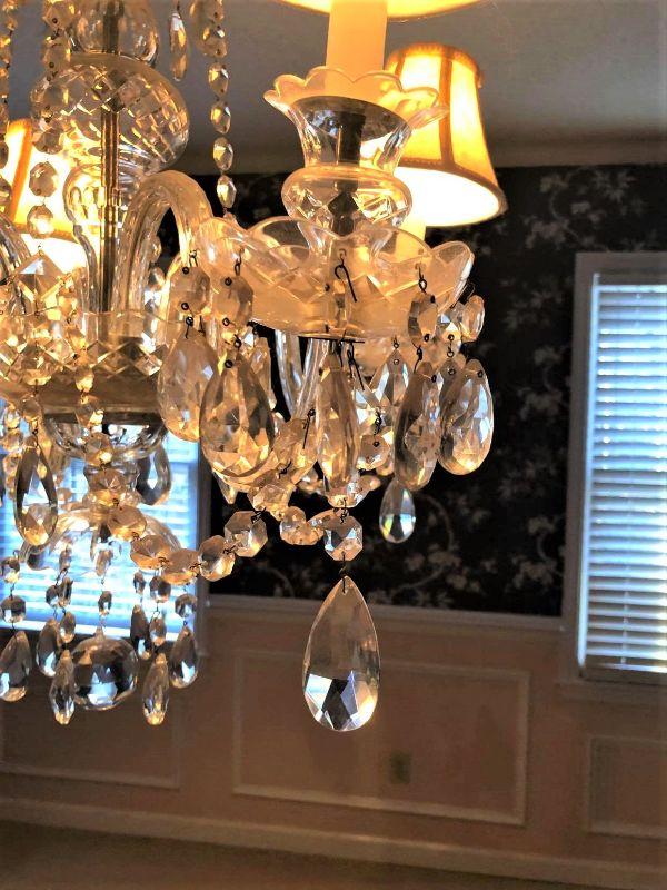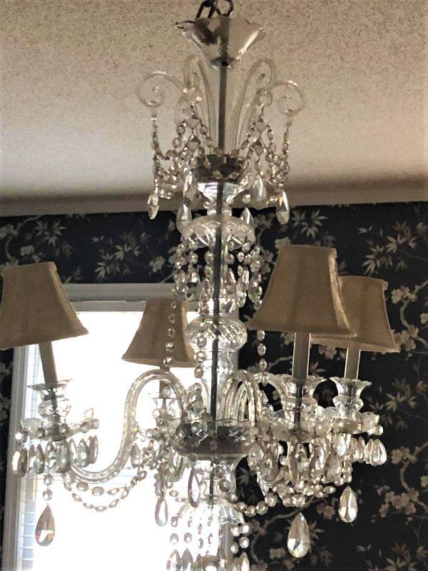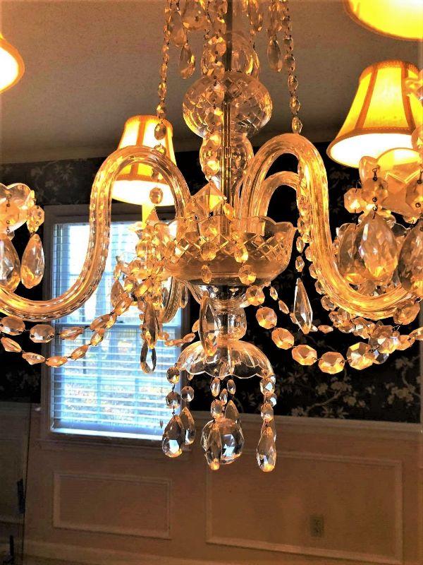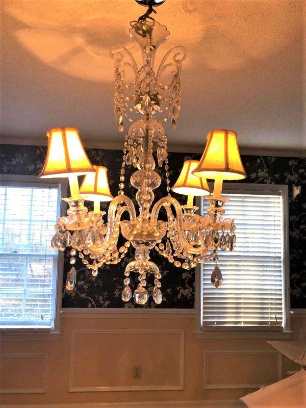 Schonbek chandelier. Originally had 6 arms but 2 broke during move but professionally repaired with 4 arms reattached. Gorgeous piece.