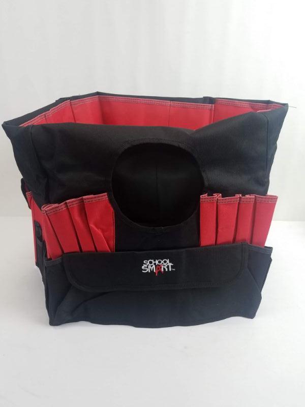 School Smart Caddy Organizer, 43 Pockets, Canvas Fabric, Red & Black - New