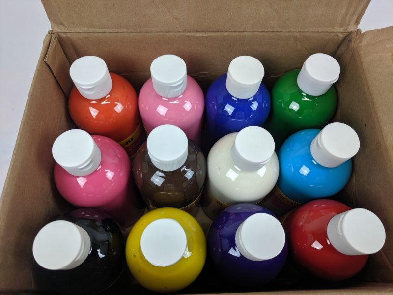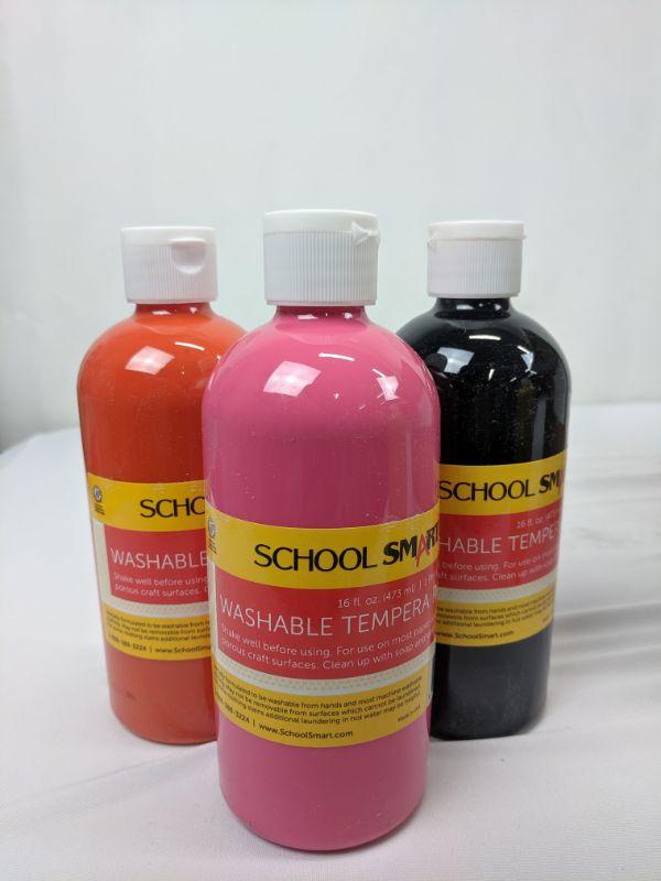 School Smart Washable Tempera Paint, Pints, 12pk, Various Colors - New