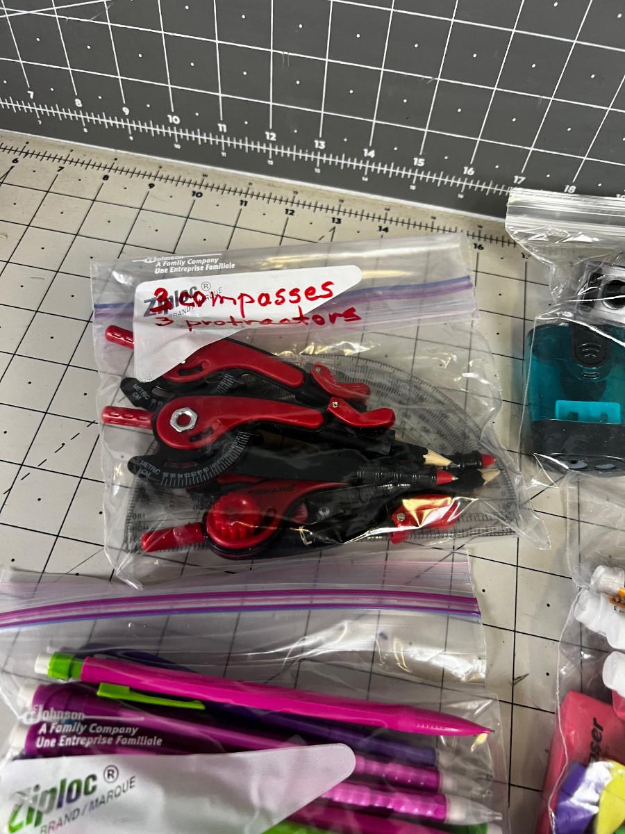 School Supplies: Pencil, Erasers, Compass