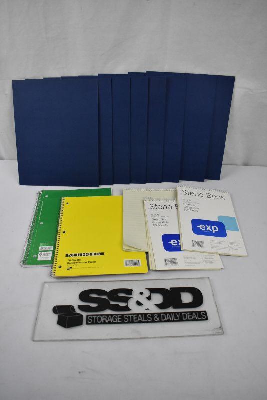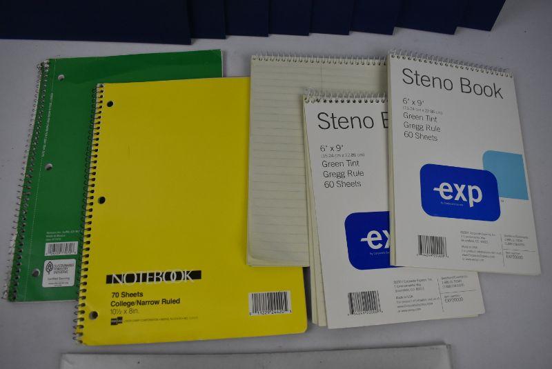 School/Office Supplies: 8 Navy Folders in New Condition & 5 Notebooks