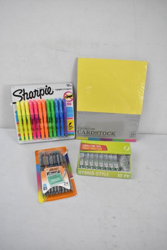 School/Office Supplies: Sharpie Highlighters, Cardstock, Mechanical Pencils, Tombow Correction Tape - New