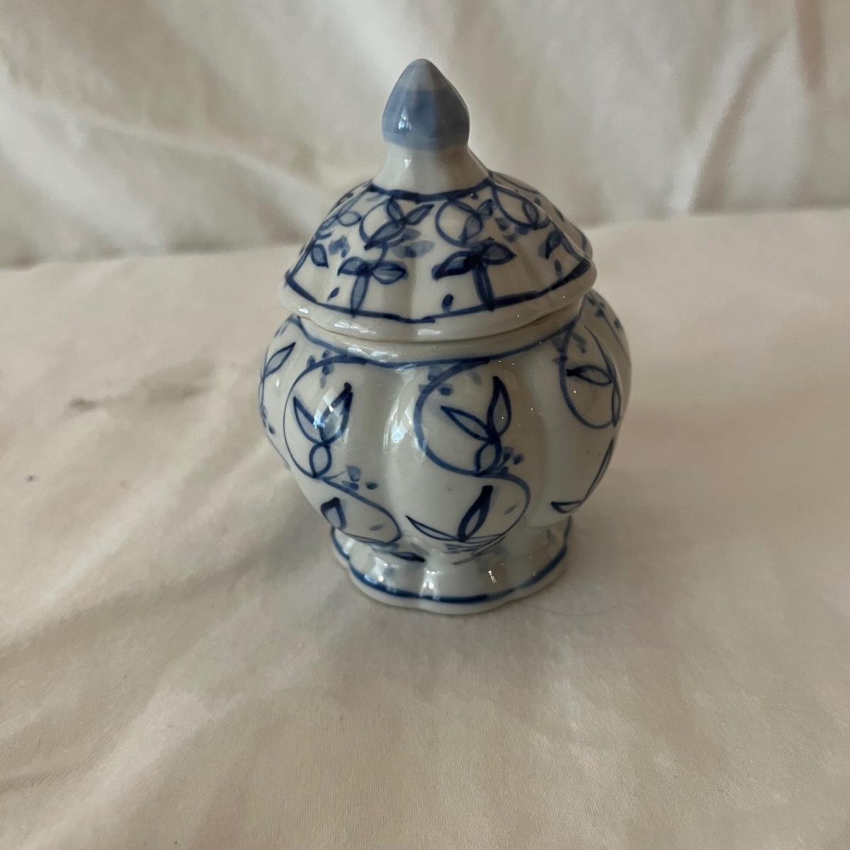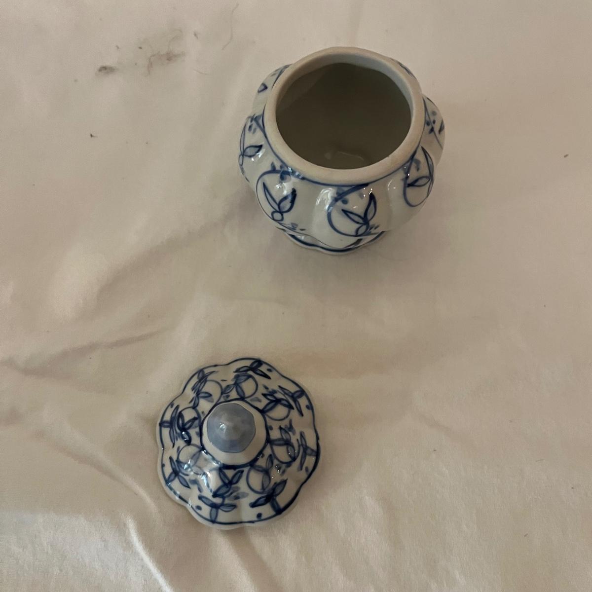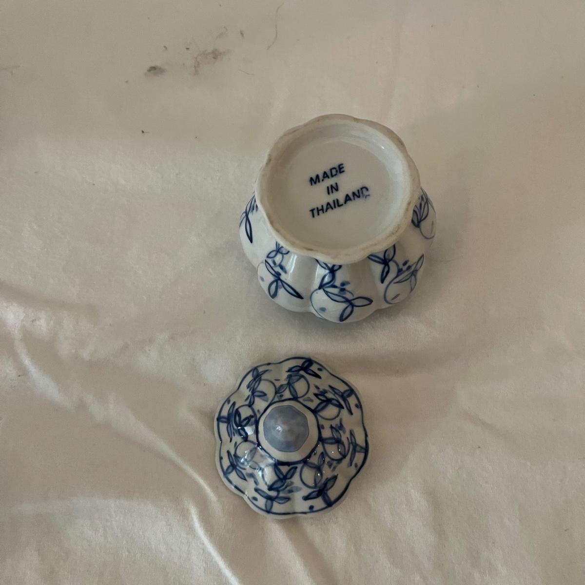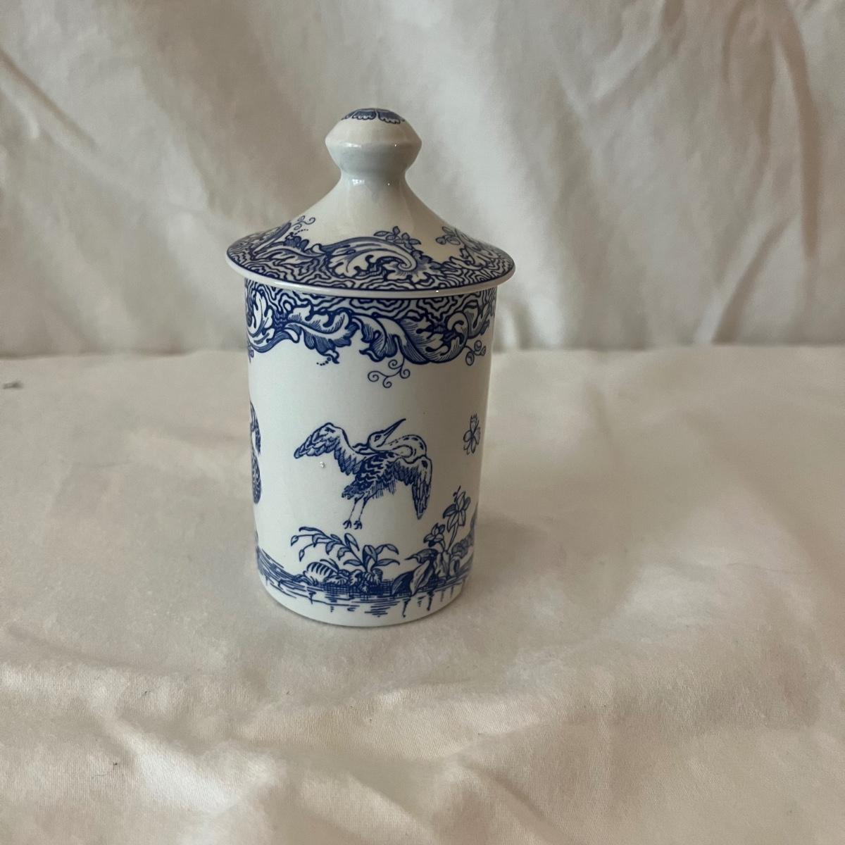 Lot includes a Schrobenhausen tankard, The Spode Blue Room Collection Persian bird lidded Jar and a lidded jar that is marked made in Thailand. Tankard measures 4.5”D (base) x 9”H.