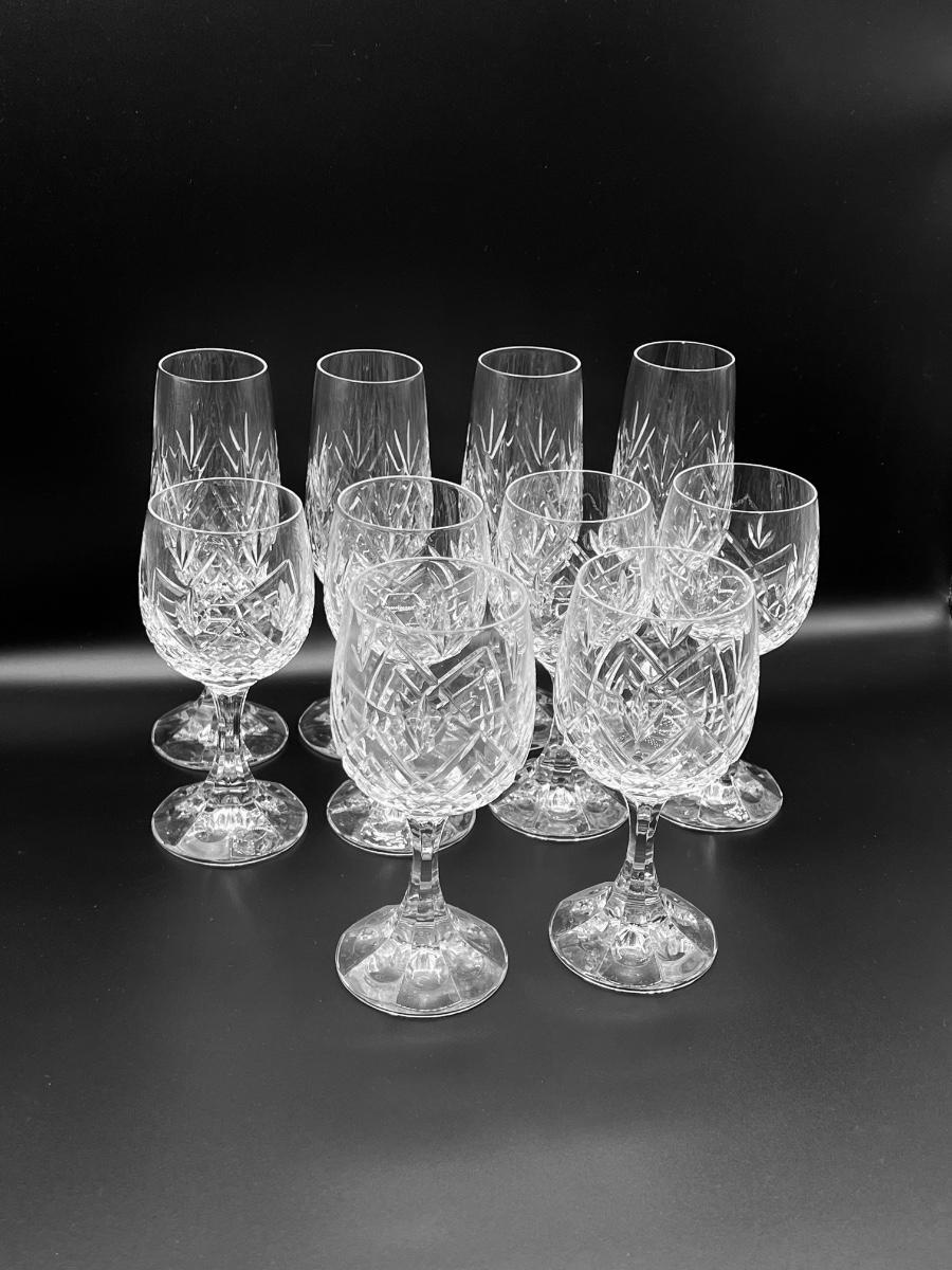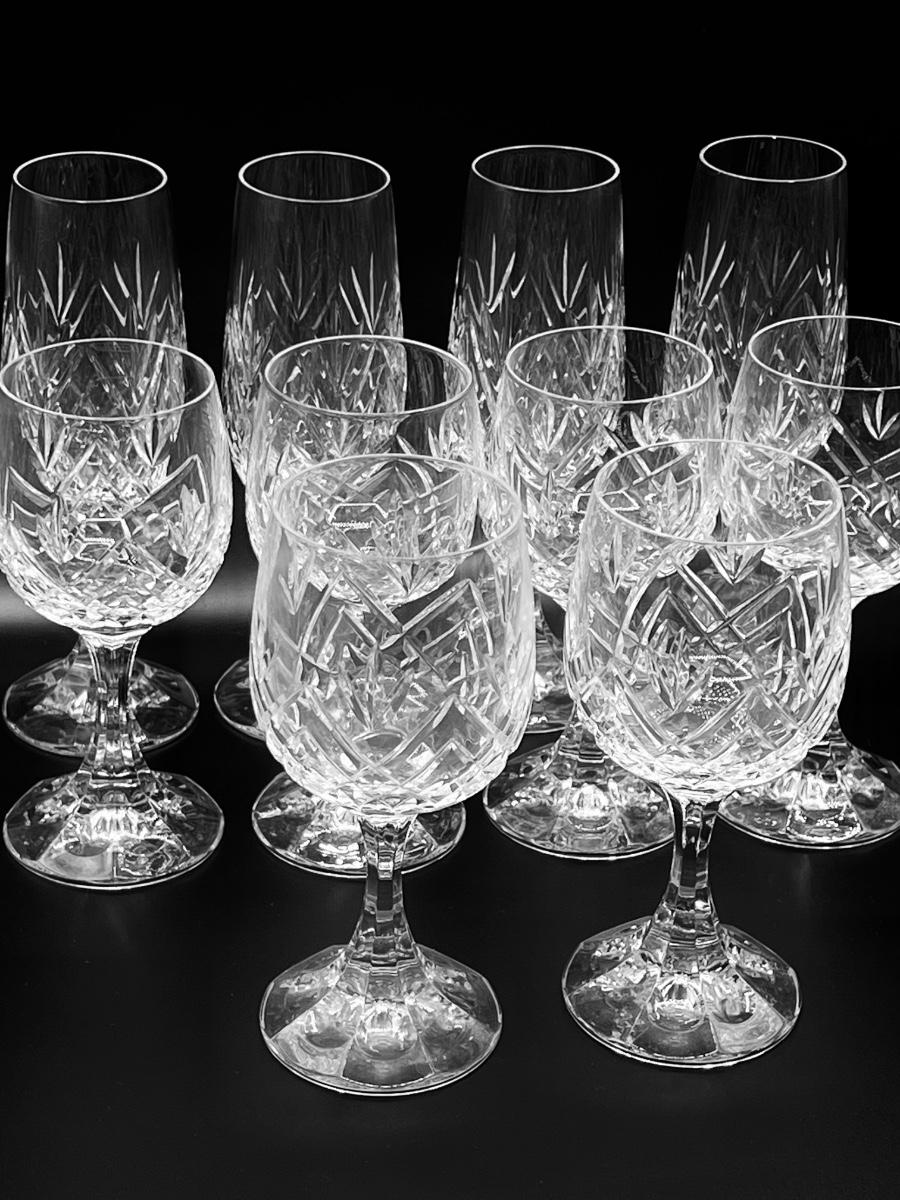 Set includes: 4 champagne = 7 3/8” , 2 wine glasses = 6 3/8”, 4 wine glasses = 6”